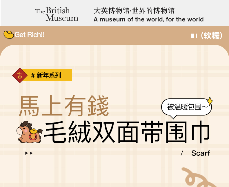 大英博物馆 新年系列 马上有钱毛绒 双面带围巾