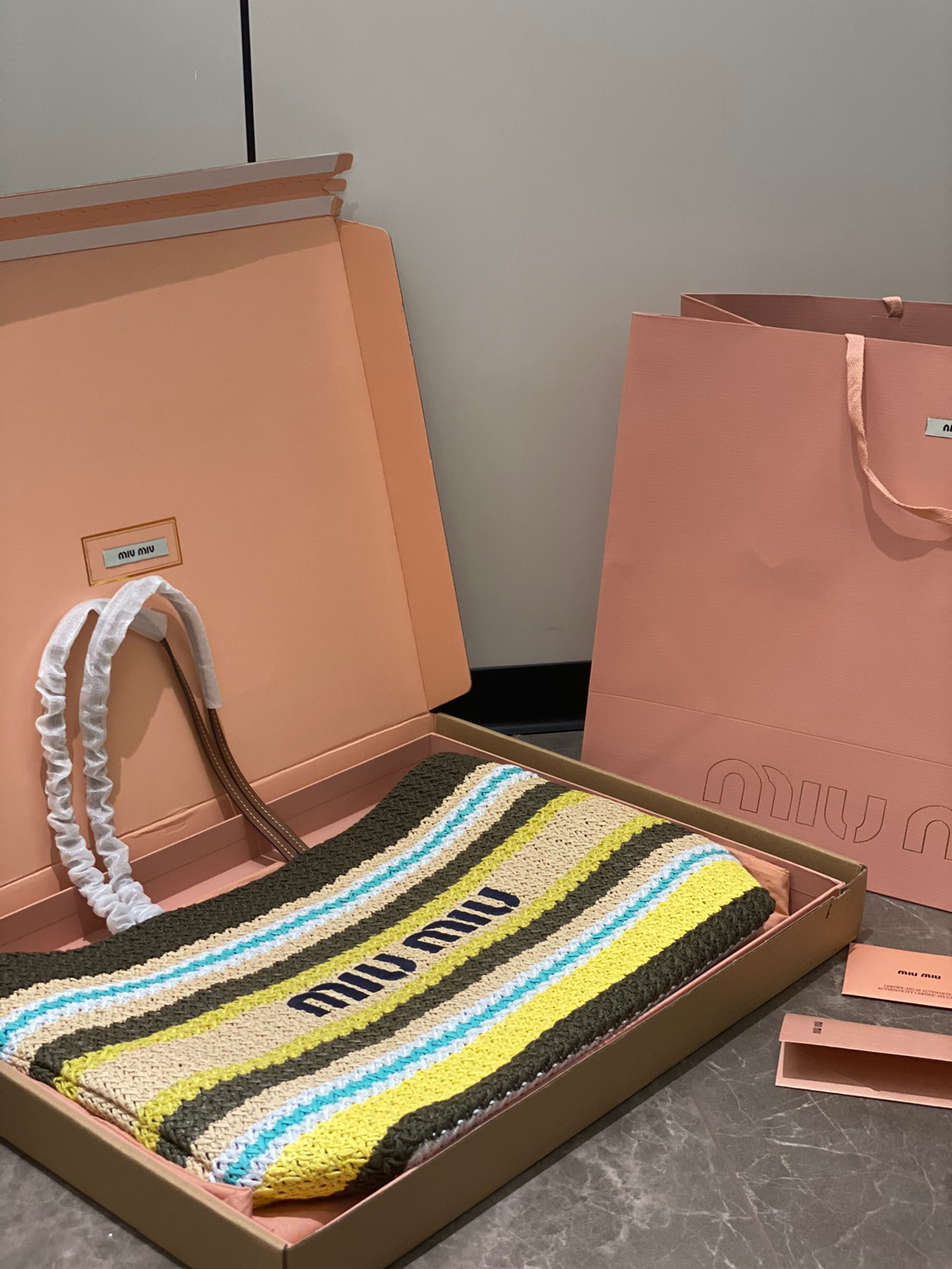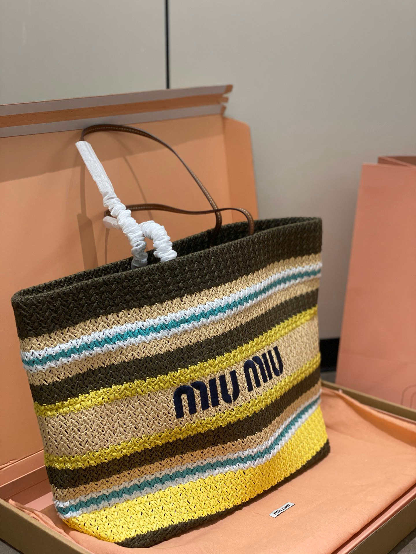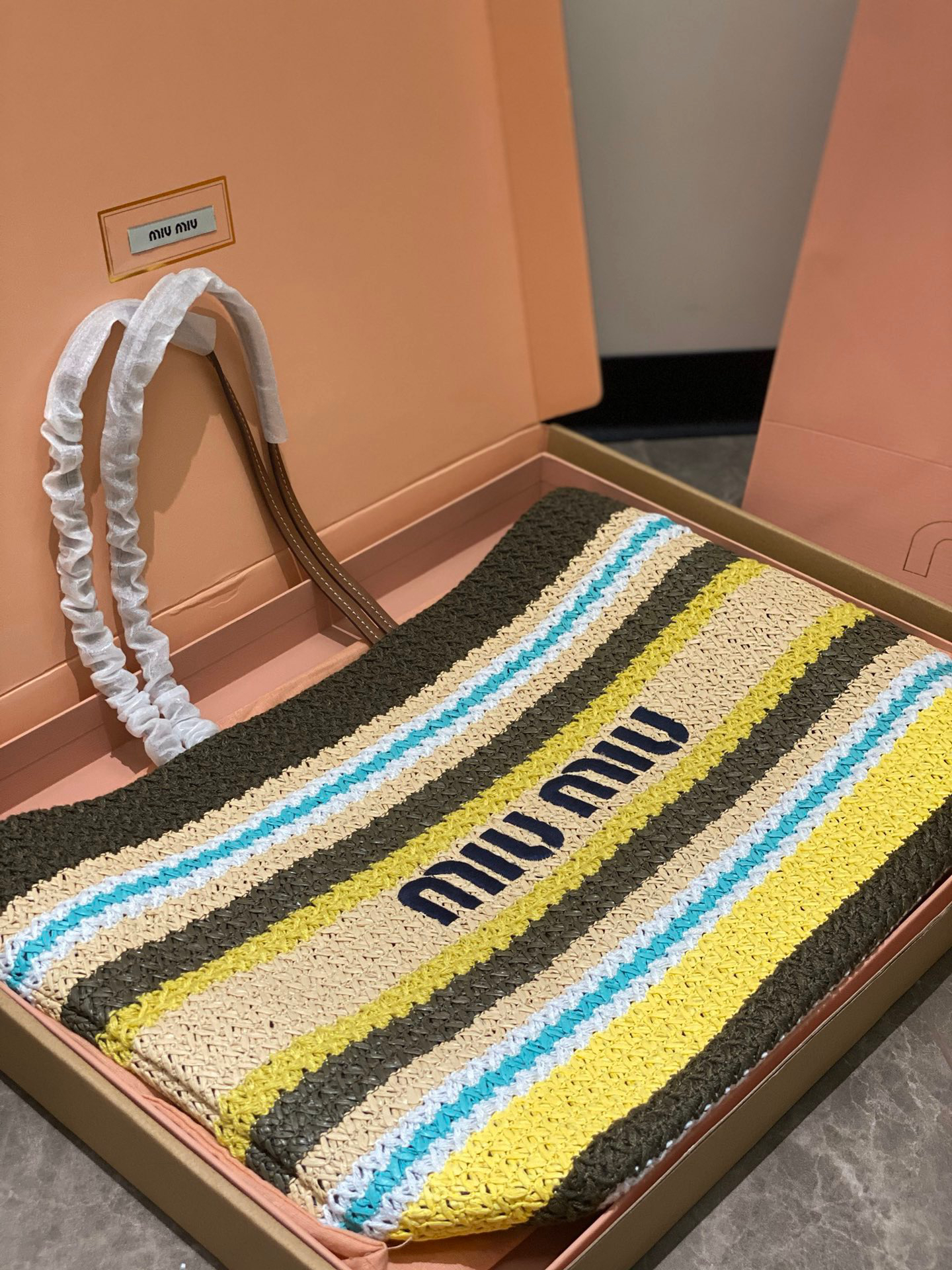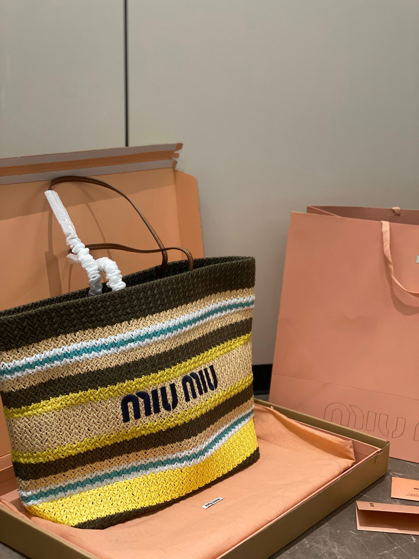 原厂皮𝐦𝐢𝐮 拉菲草编织包
