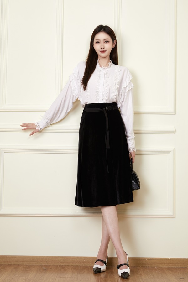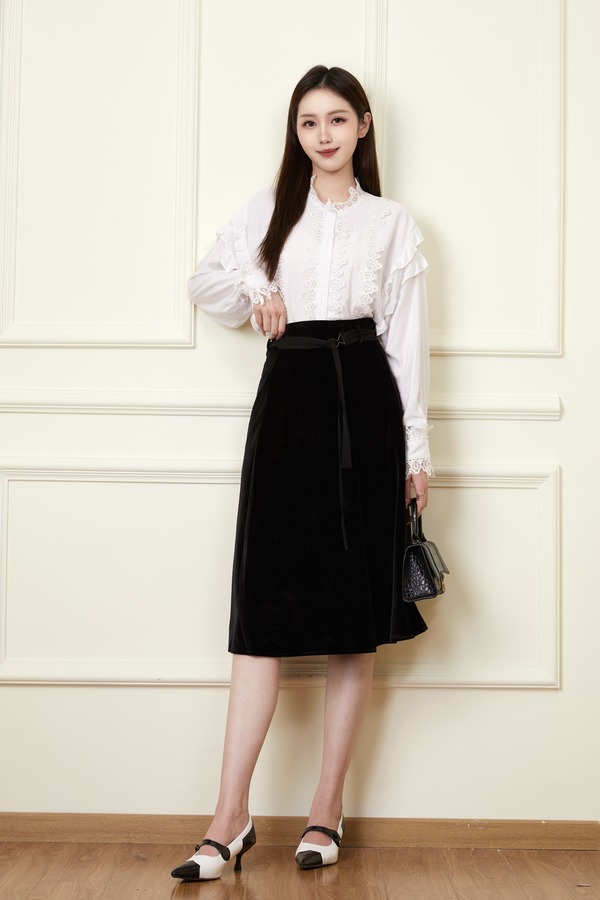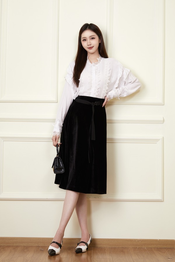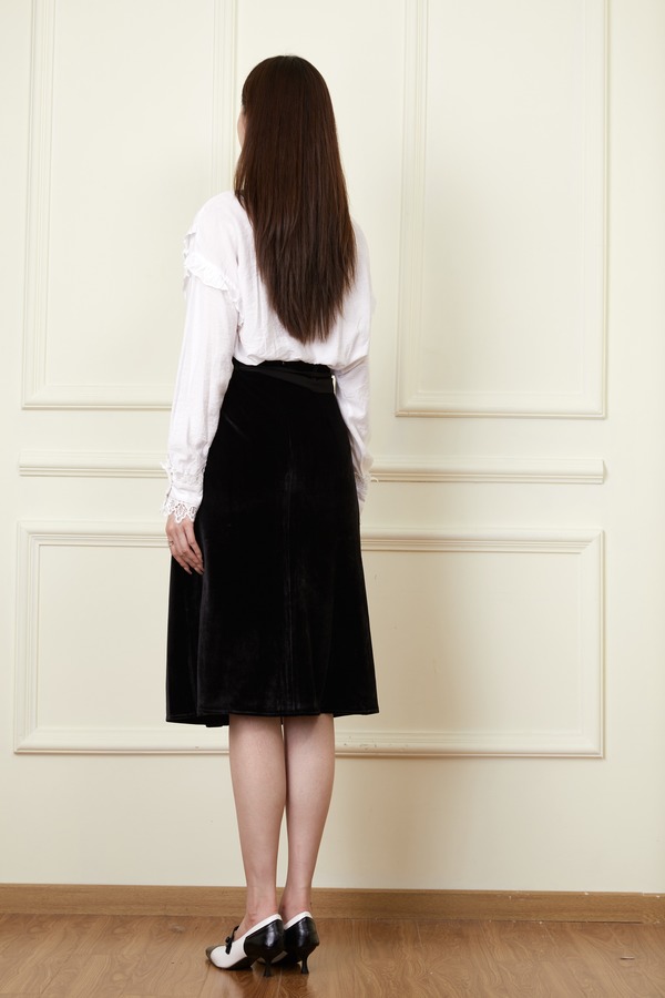 Le Malene 黑色丝绒高腰半身裙 19872