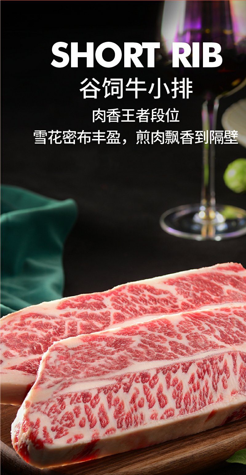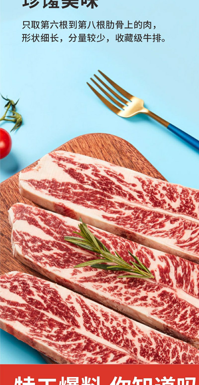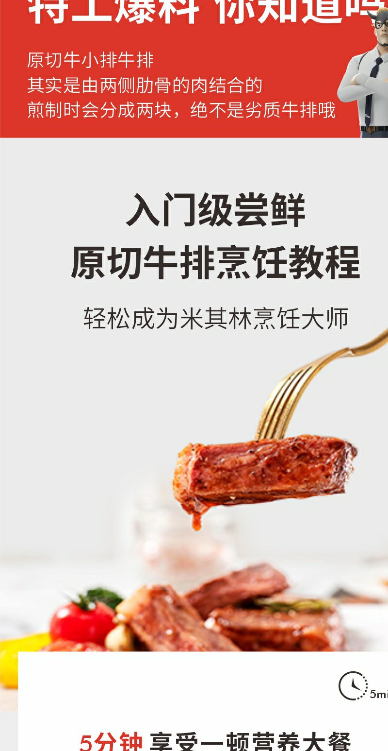 美国谷饲ding级牛小排1000g原切牛排进口牛肉顺丰冷链直达