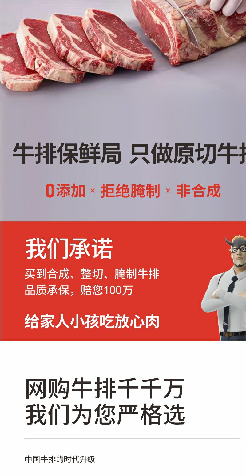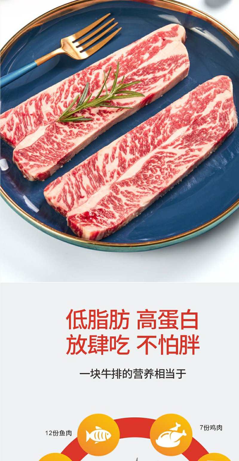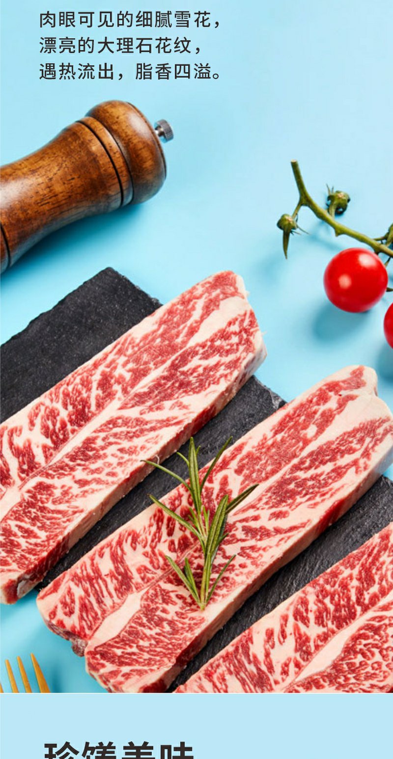 美国谷饲ding级牛小排1000g原切牛排进口牛肉顺丰冷链直达