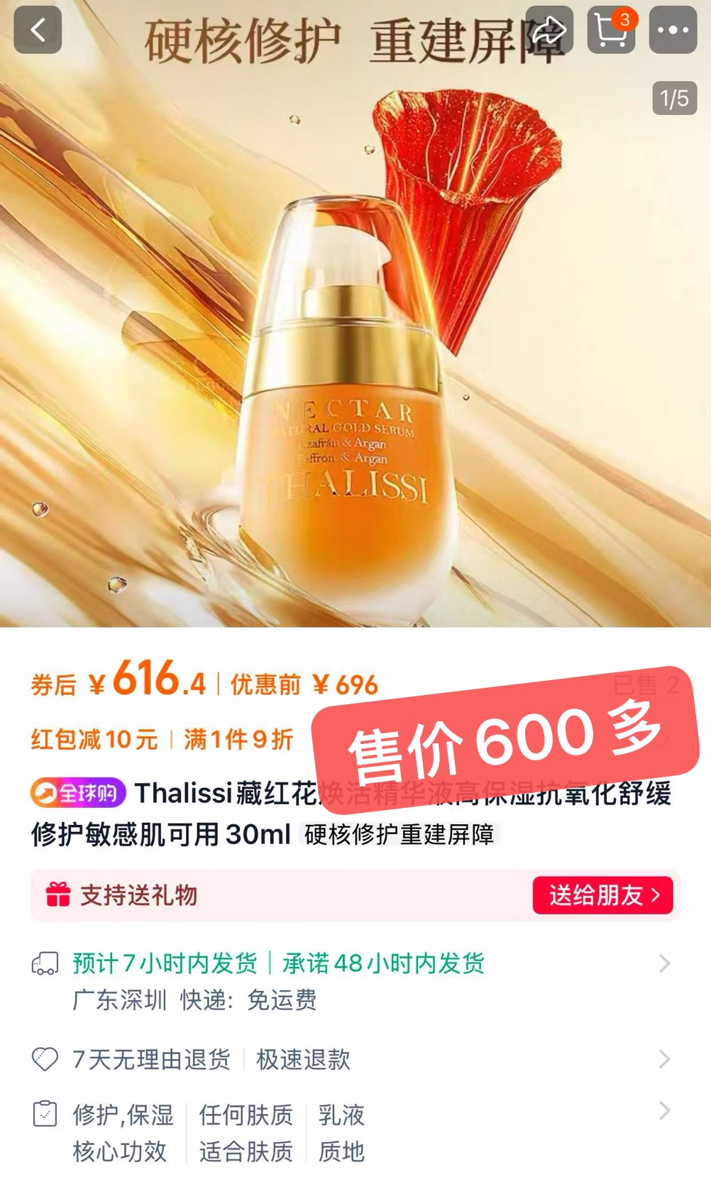 【品名】西班牙贵族高端Thalissi藏红花焕活修护精华液30ml