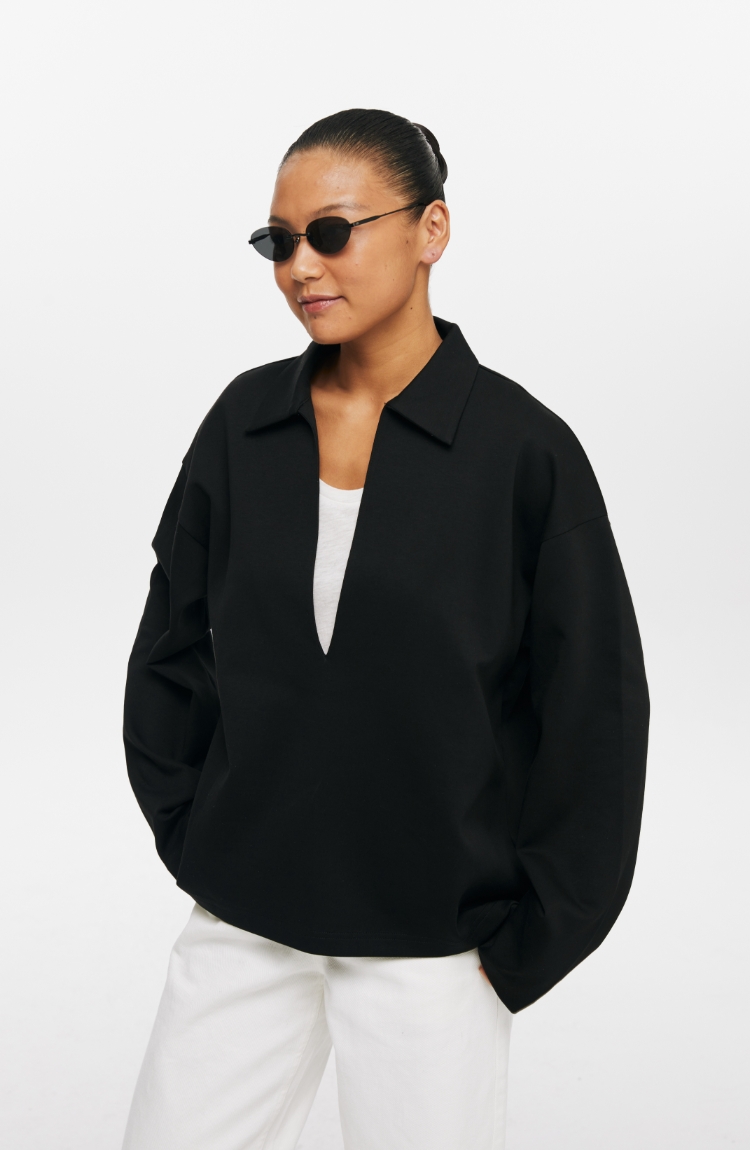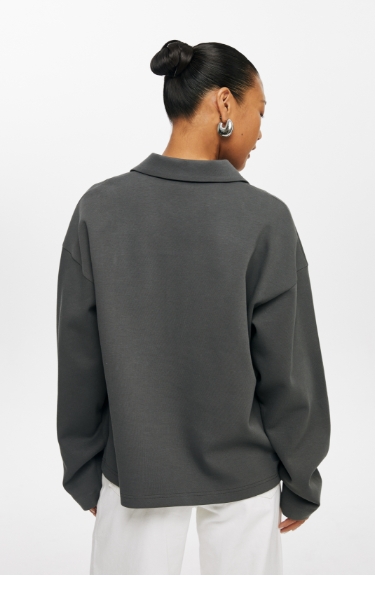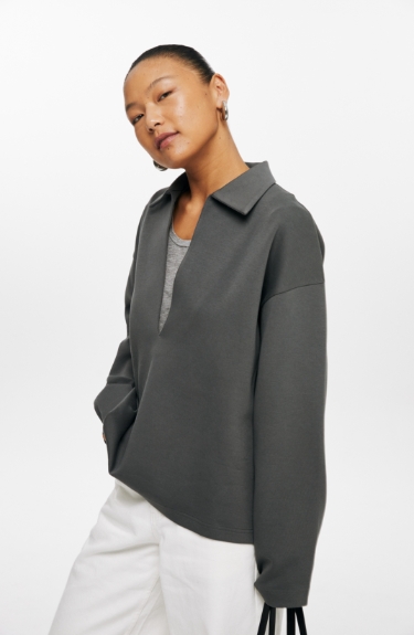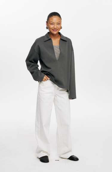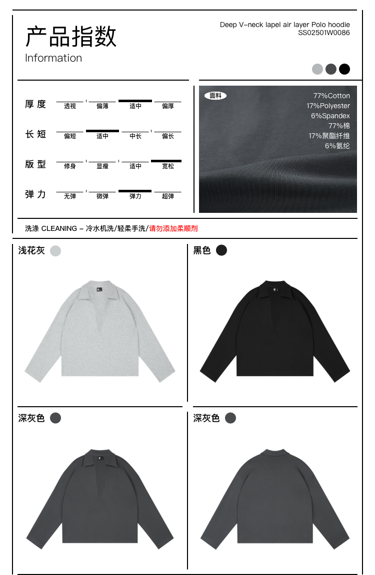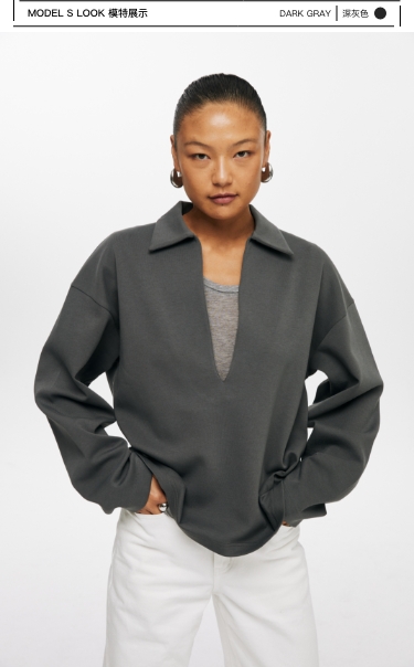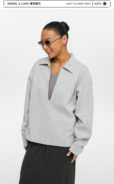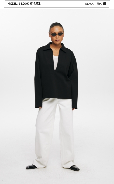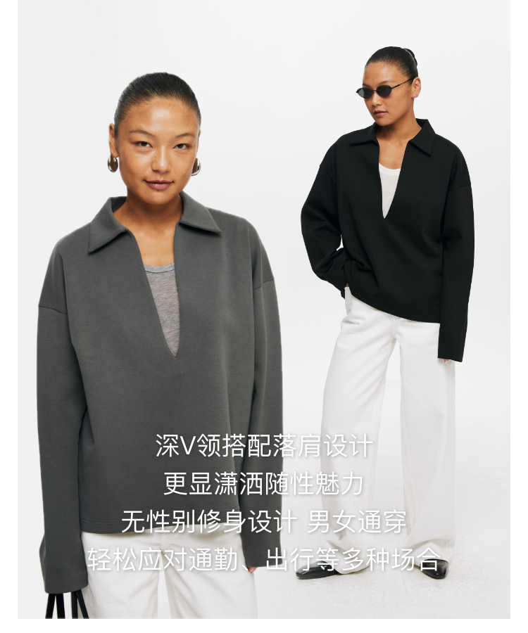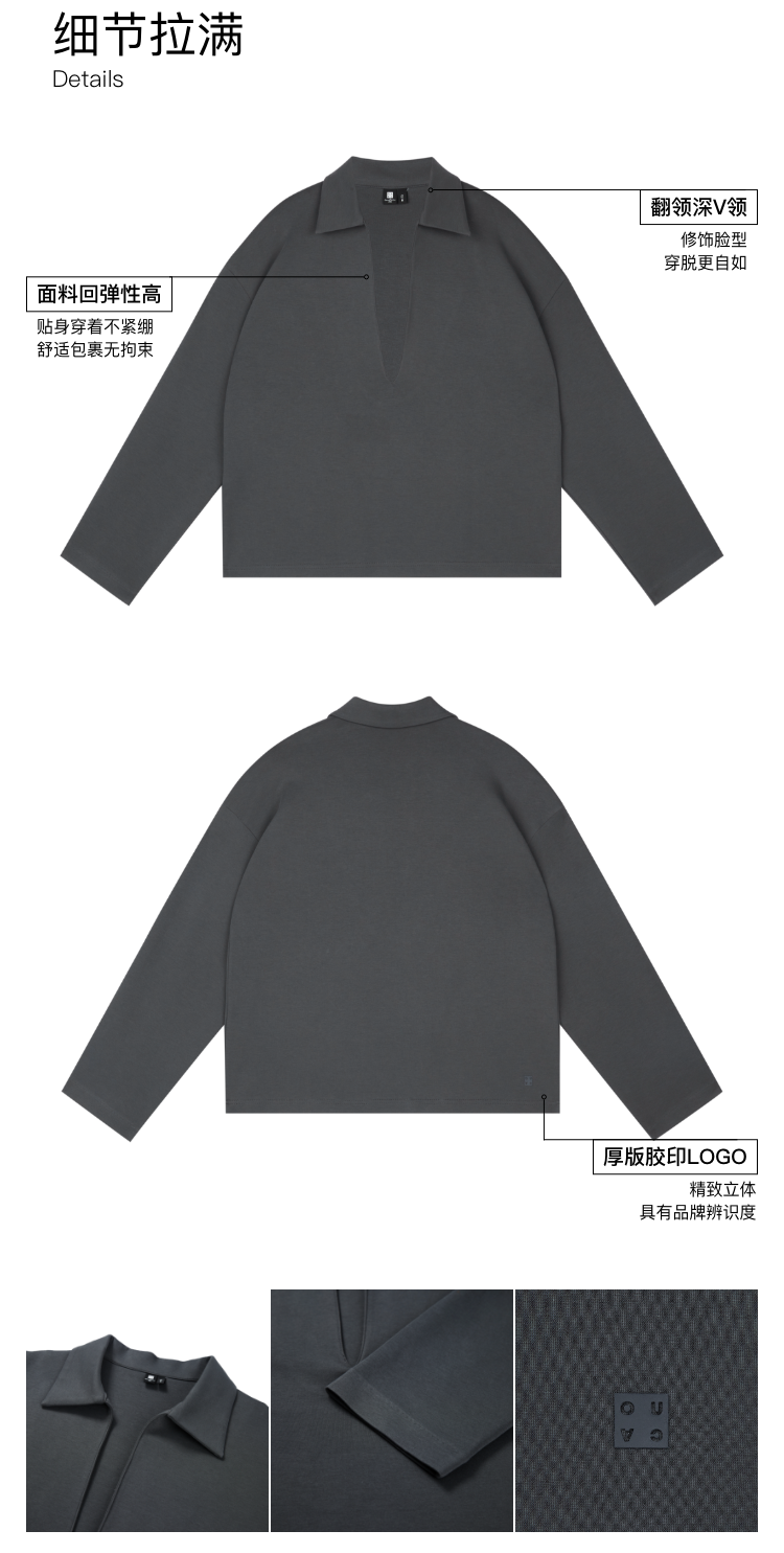 oneup深V领翻领空气层Polo卫衣