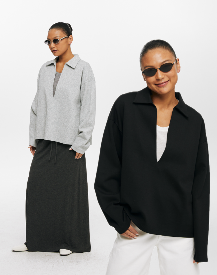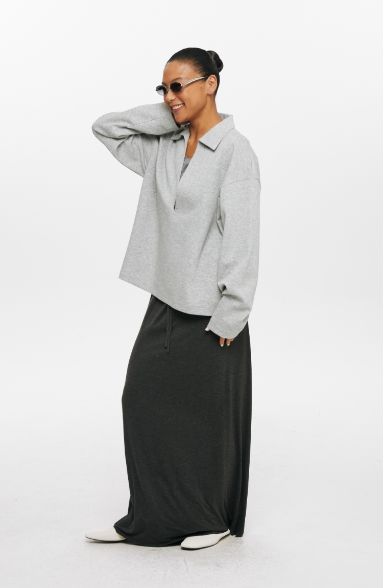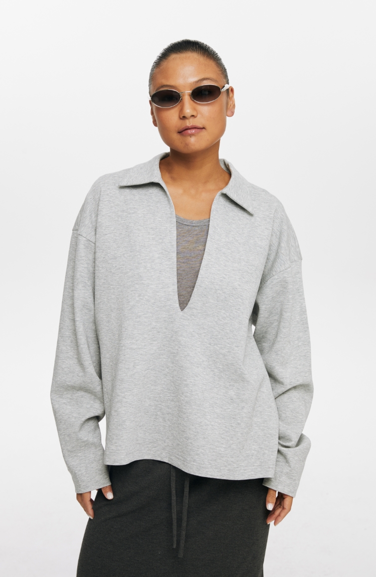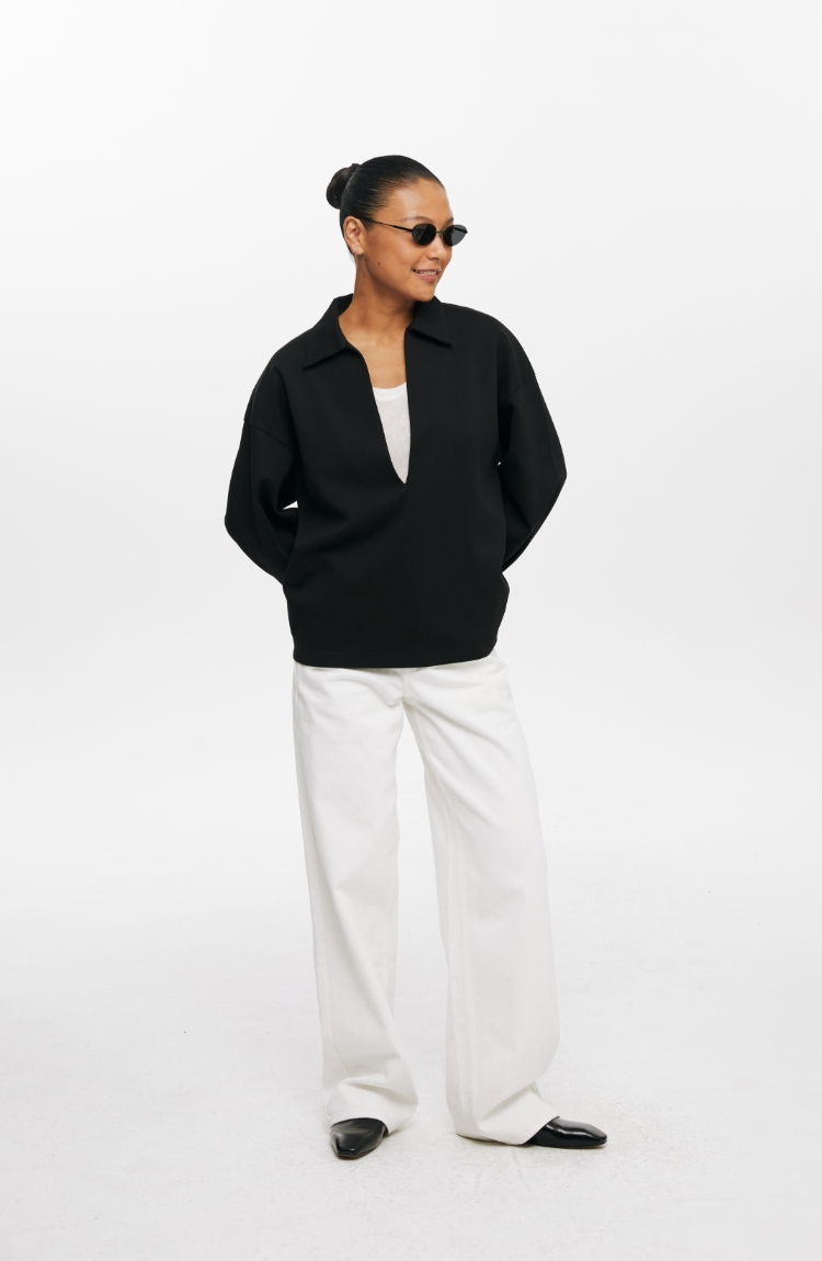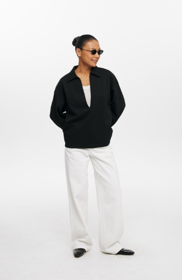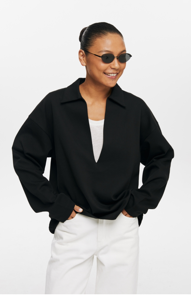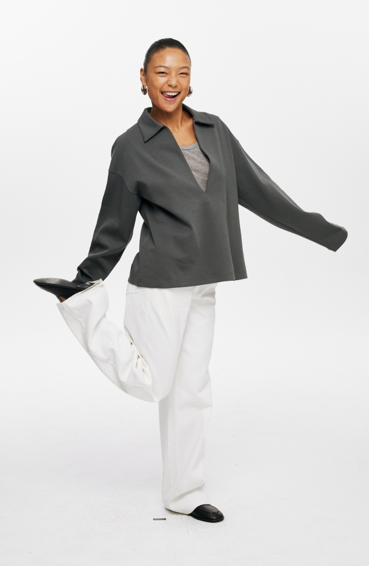 oneup深V领翻领空气层Polo卫衣