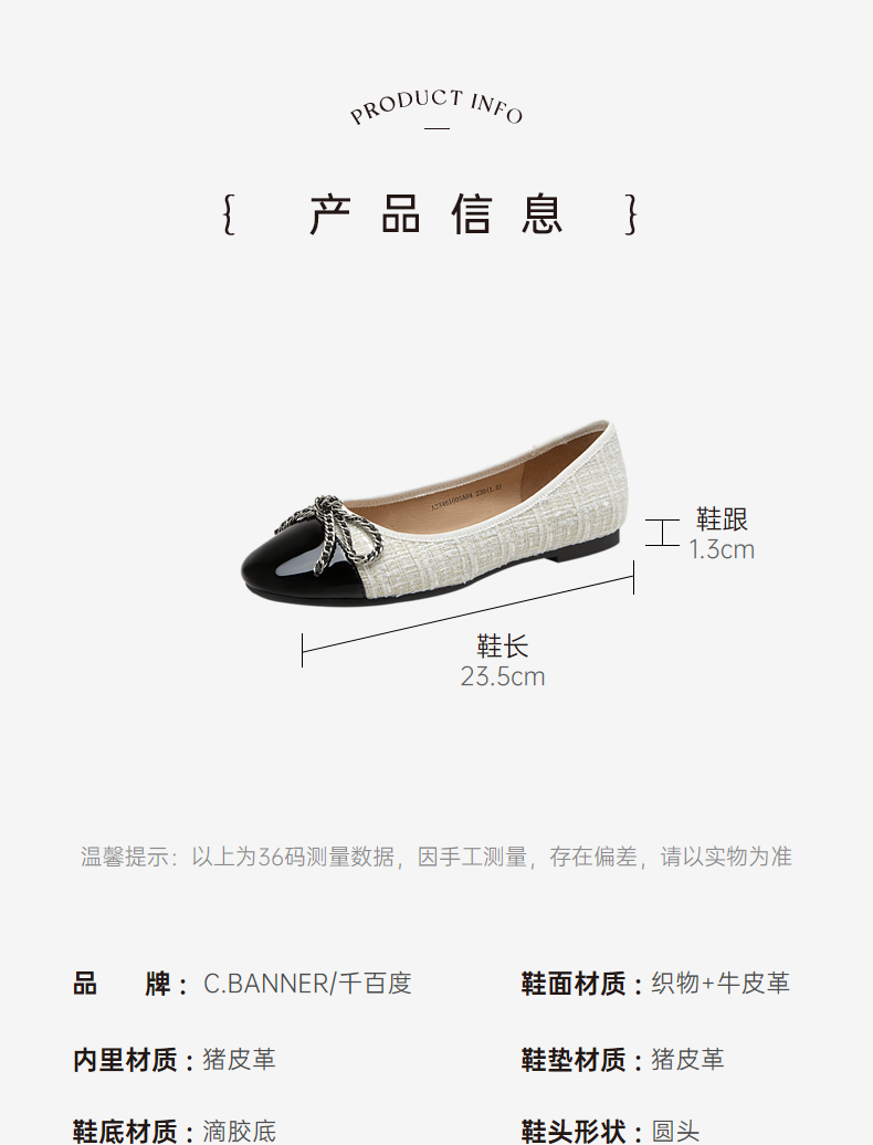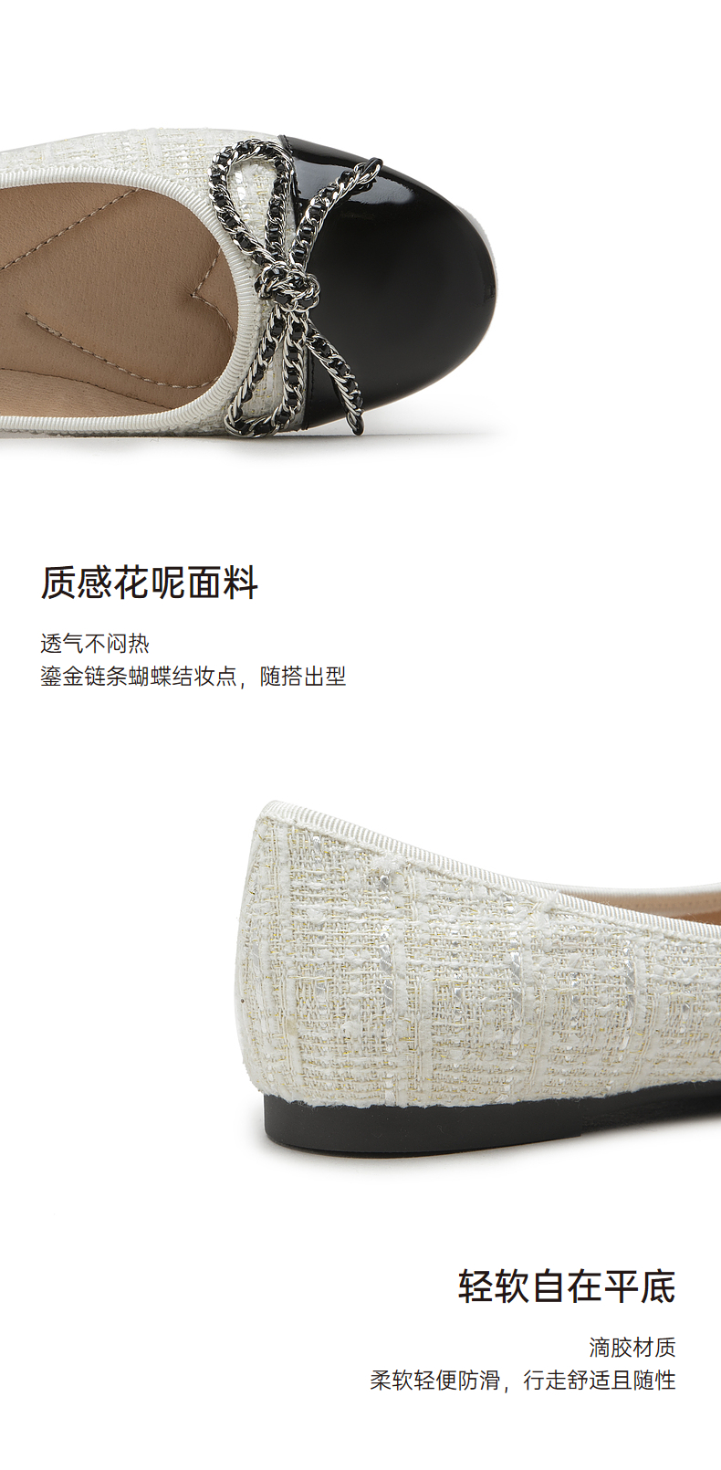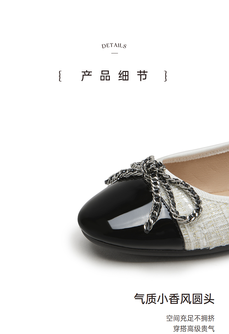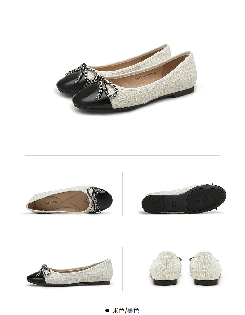 千百度小香风单鞋秋季平底拼接晚晚鞋浅口休闲舒适女鞋A23461005