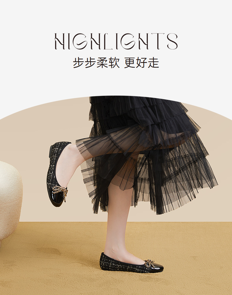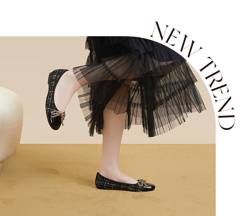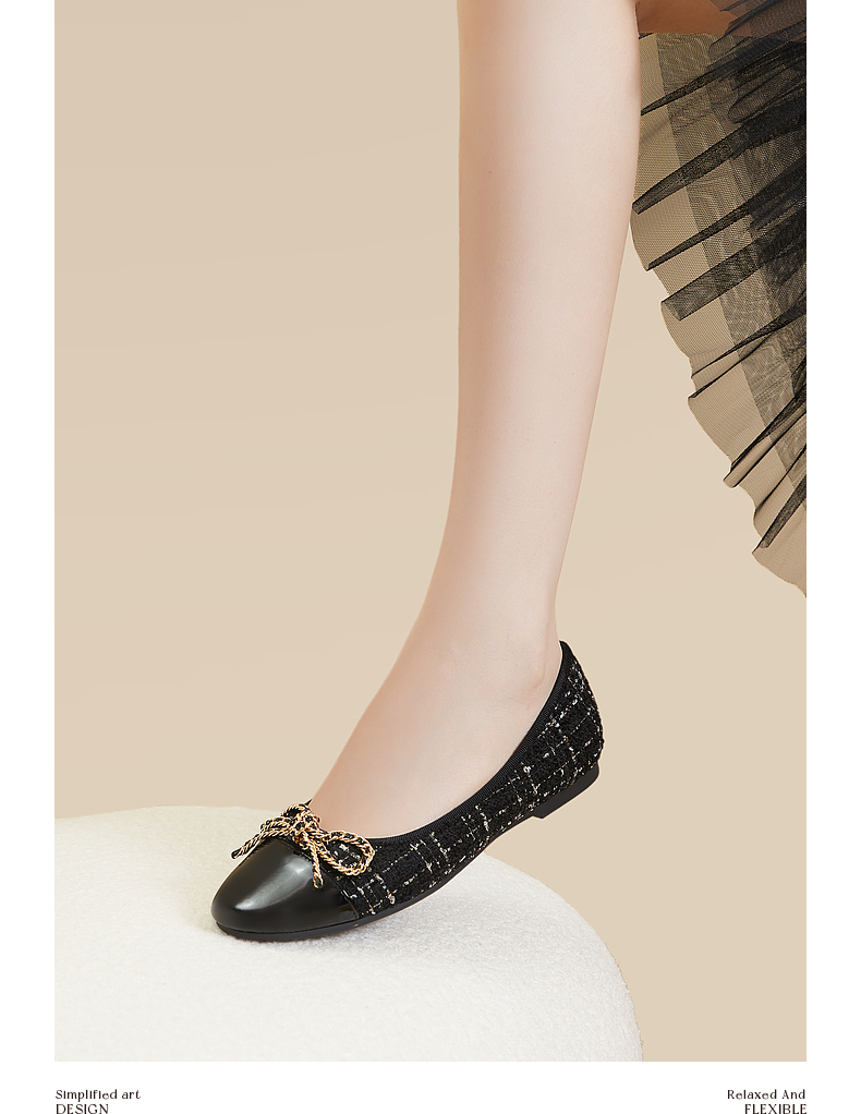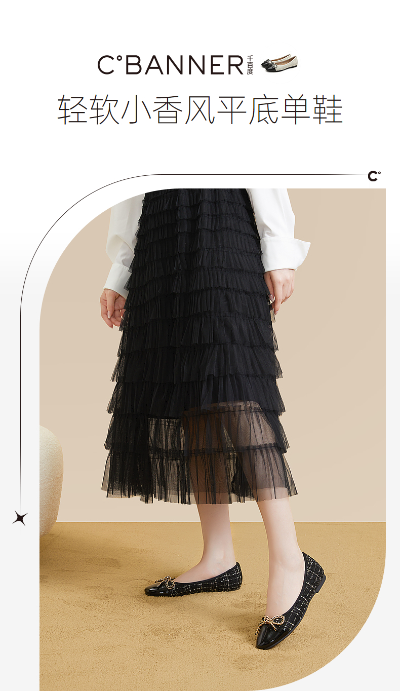 千百度小香风单鞋秋季平底拼接晚晚鞋浅口休闲舒适女鞋A23461005