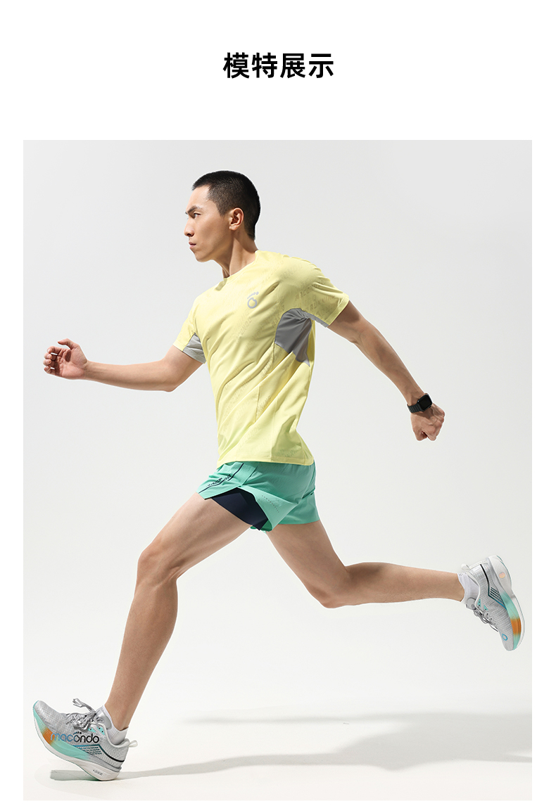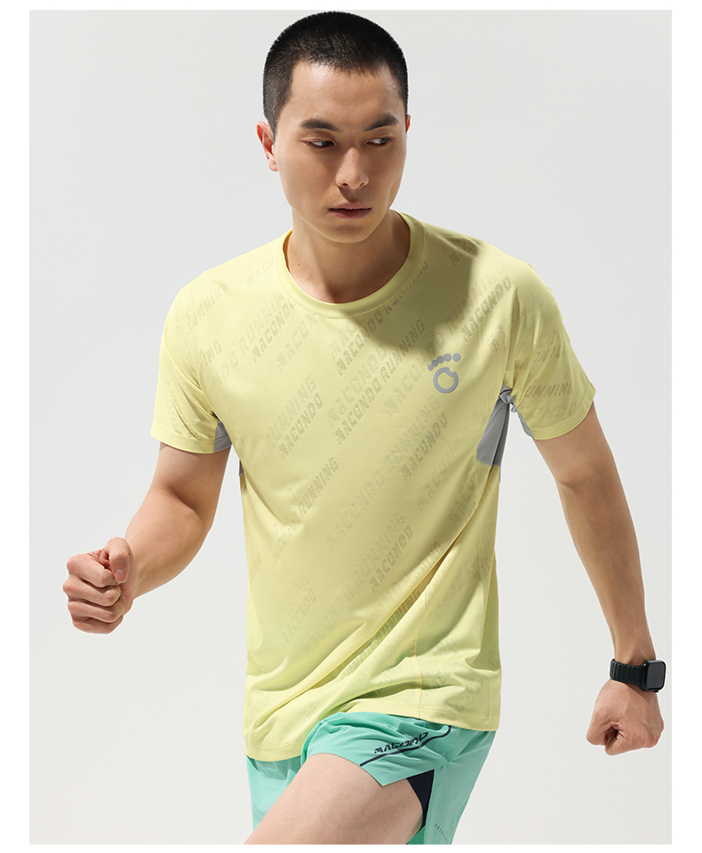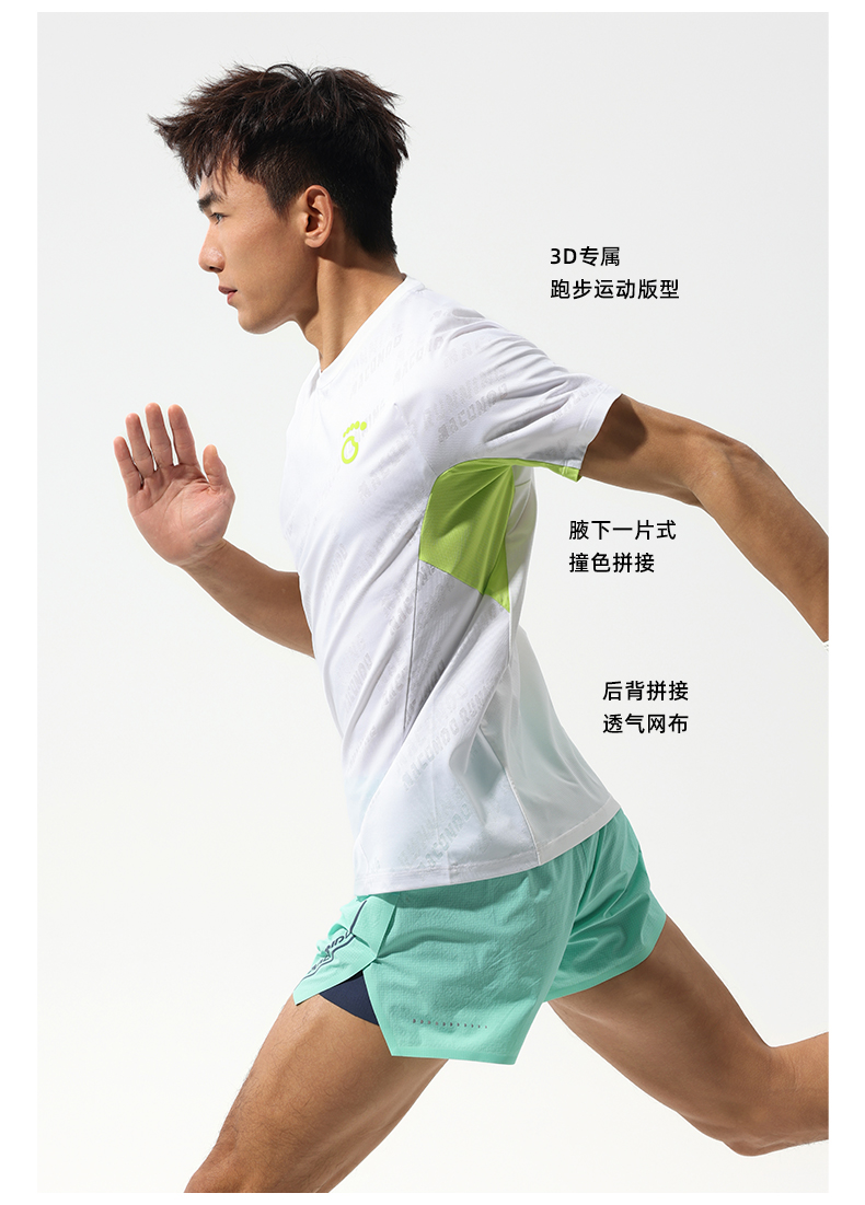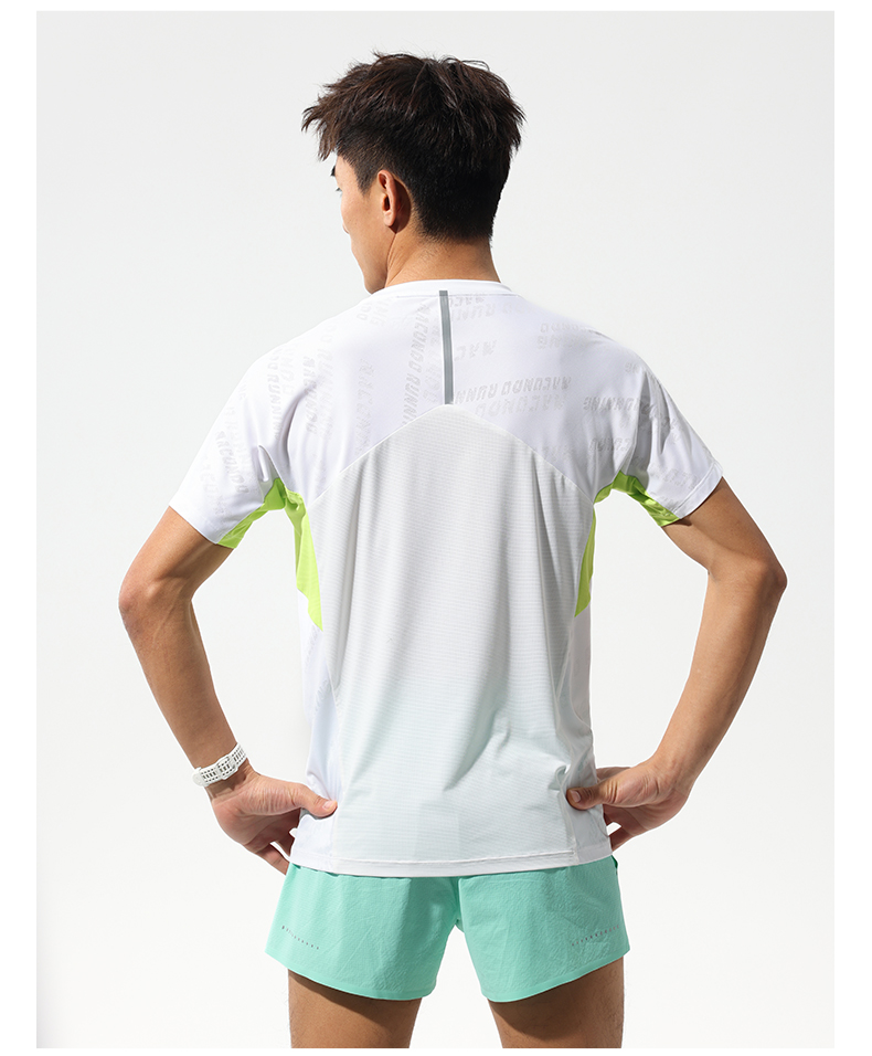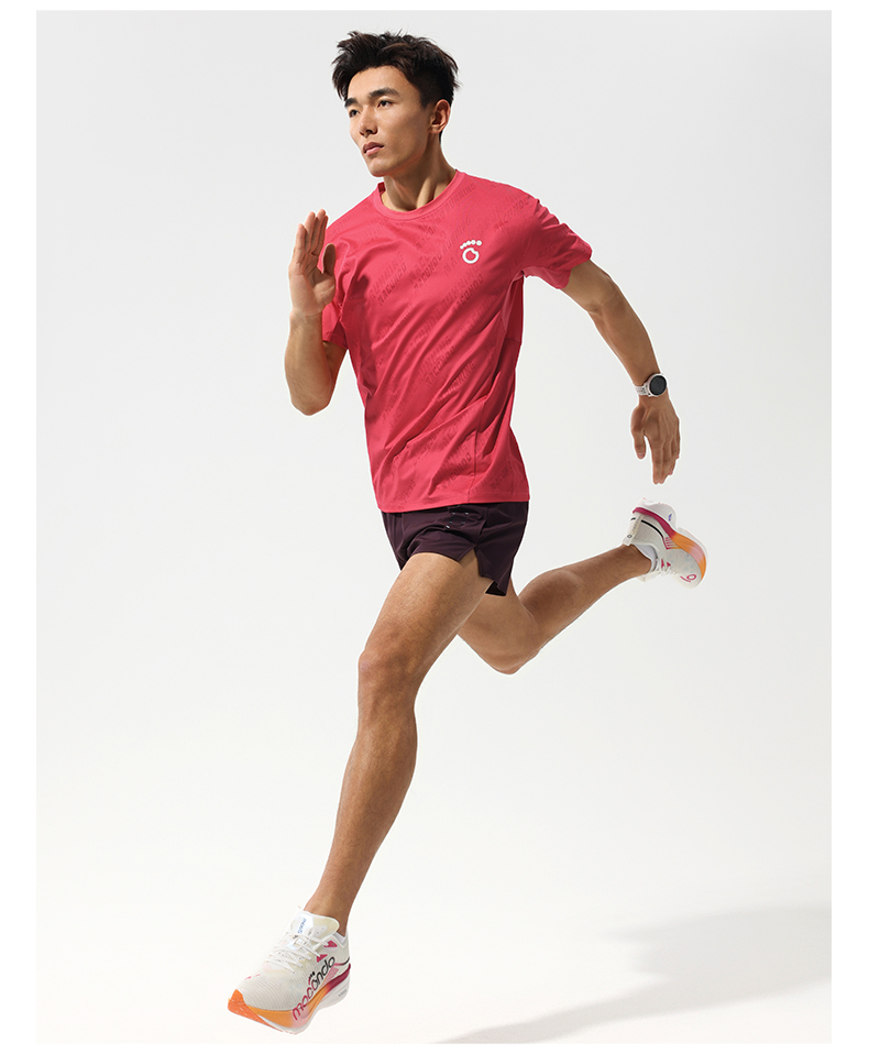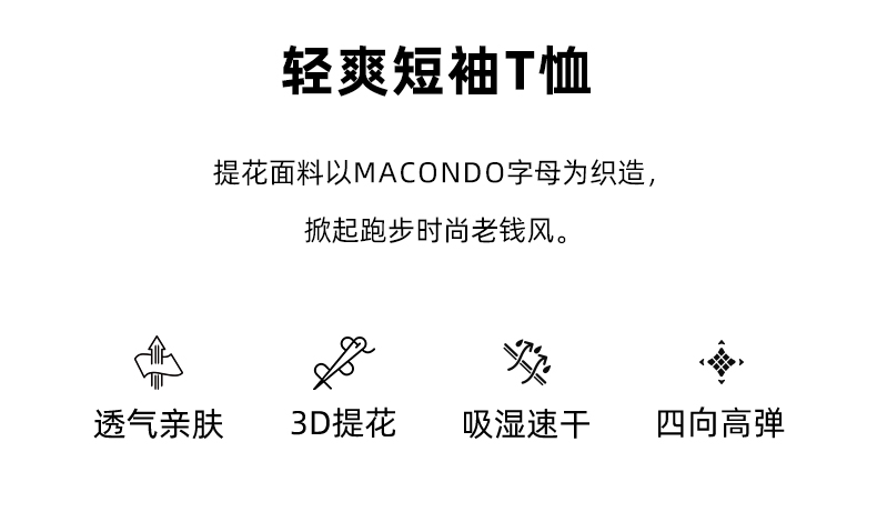 马孔多跑步轻爽短袖T恤 3D提花 吸湿速干 腋下一片式拼接 后背透气网