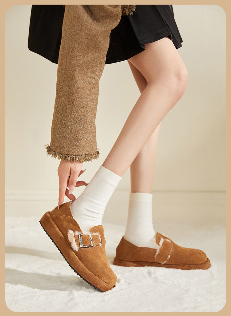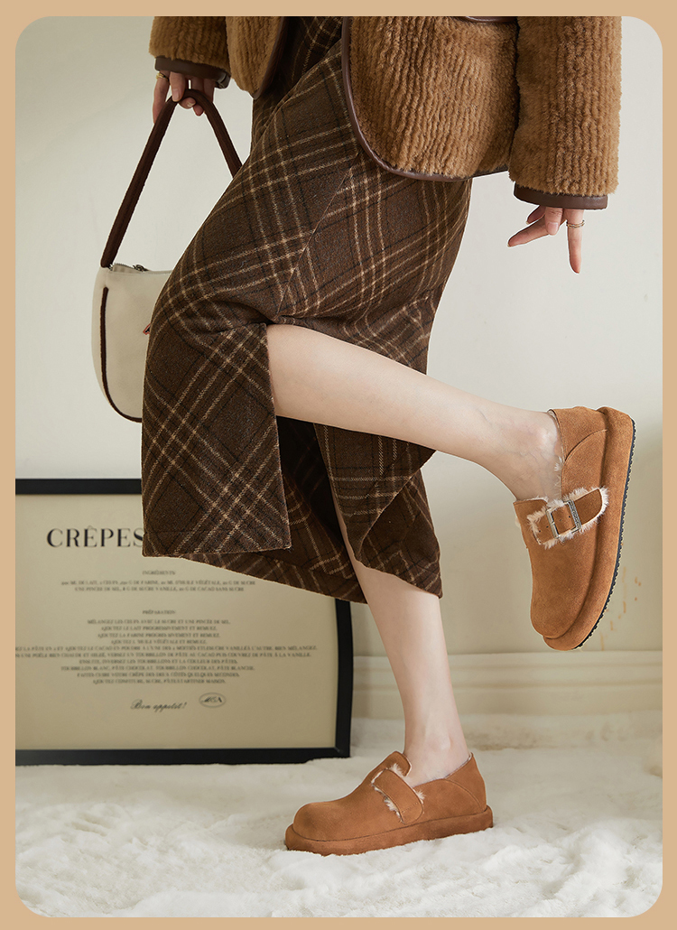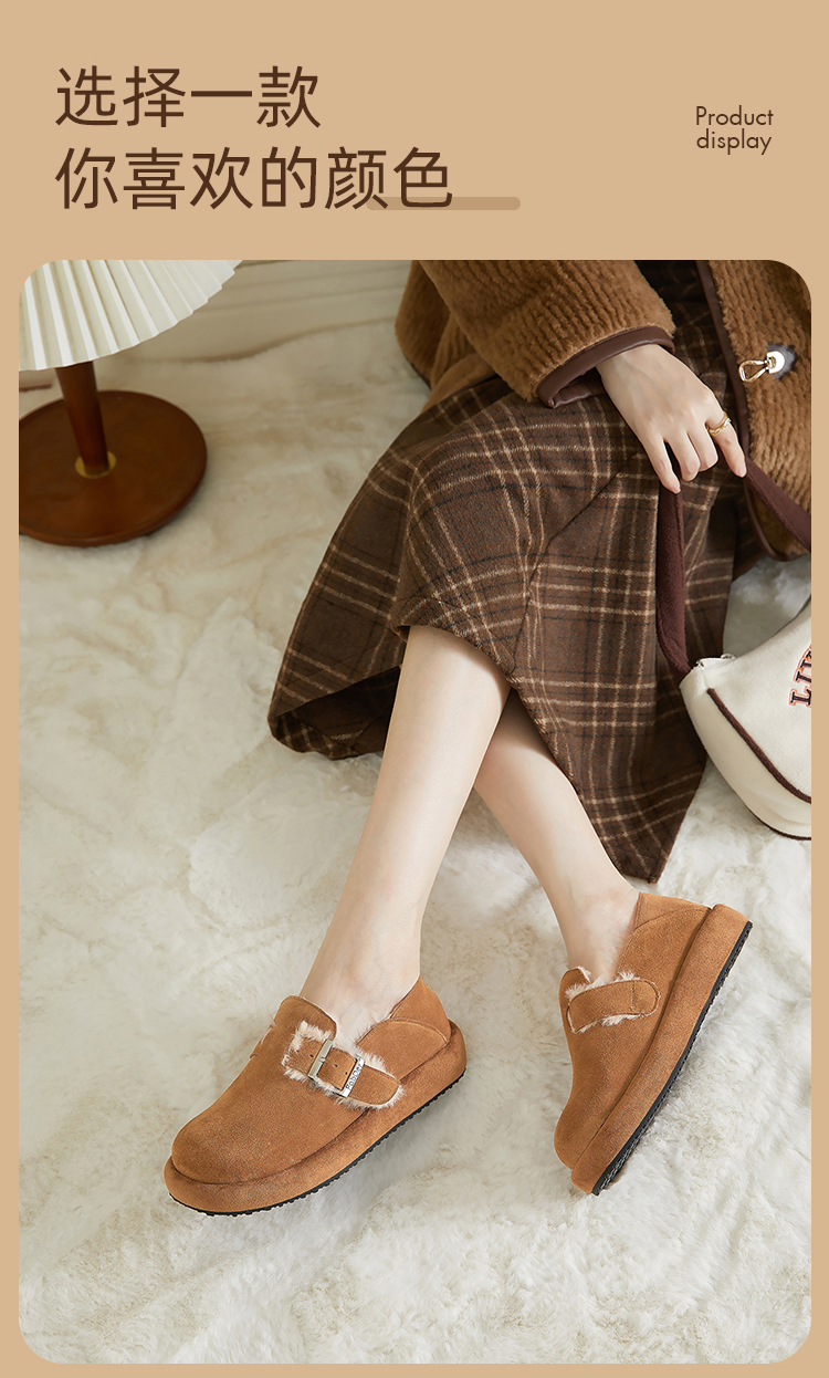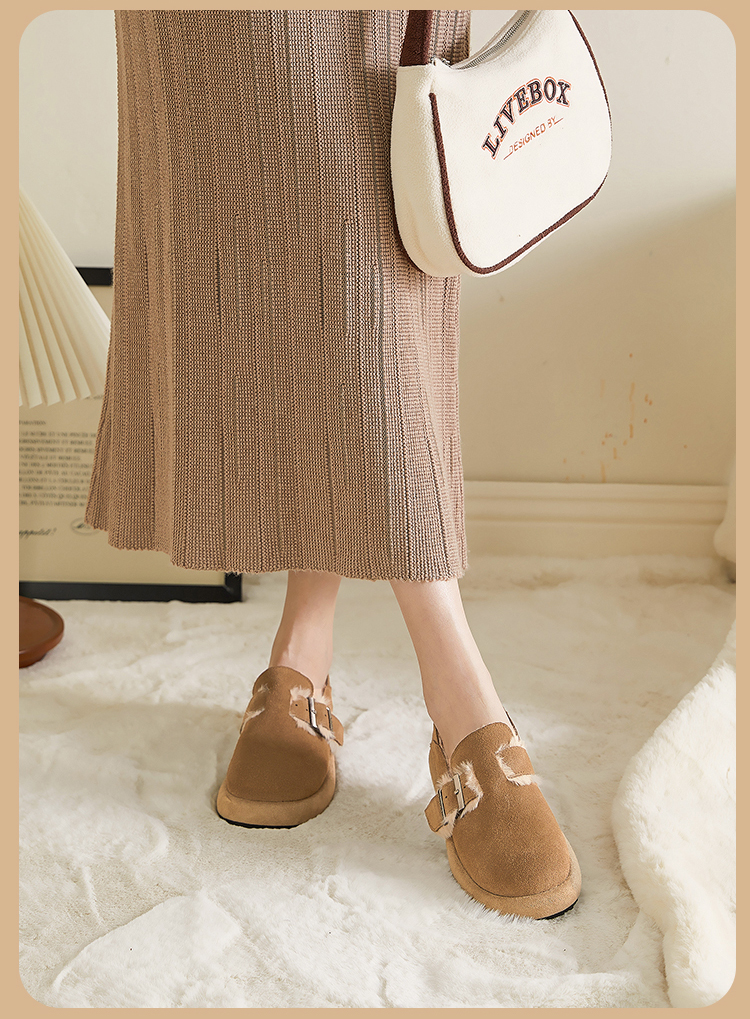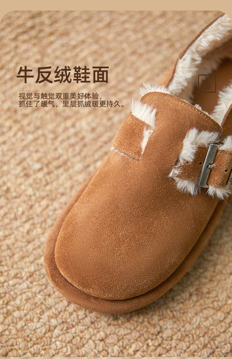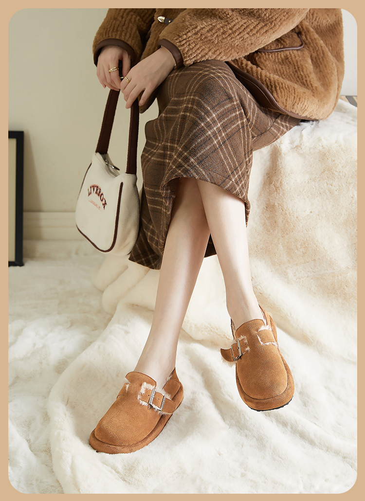 西遇勃肯鞋女新款秋冬真皮全包两穿加绒毛毛鞋厚底一脚蹬单鞋D0034226