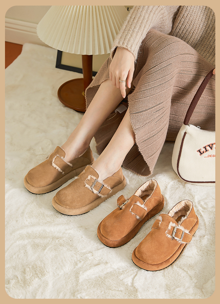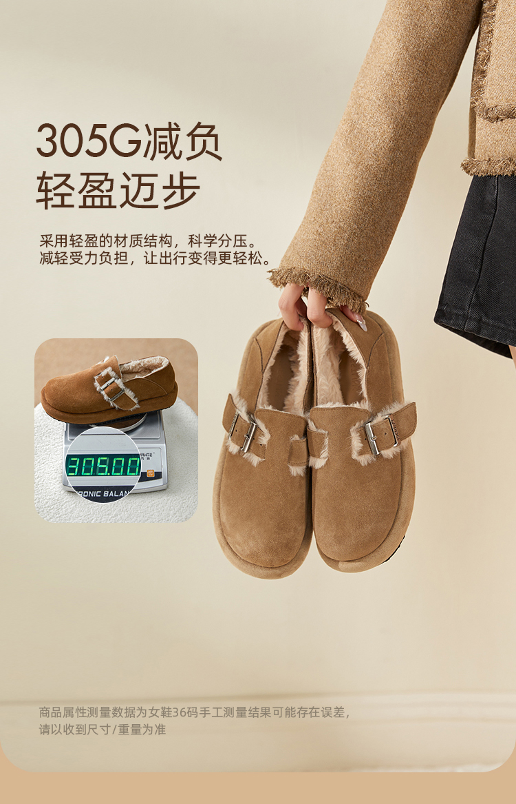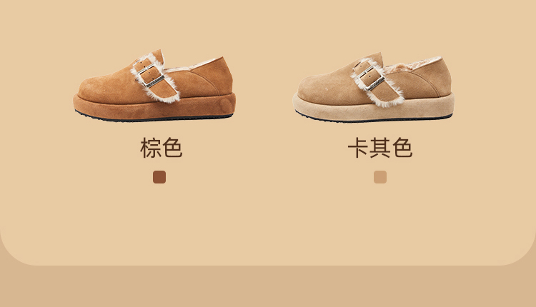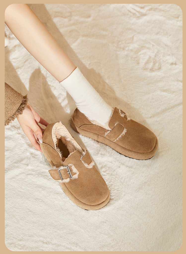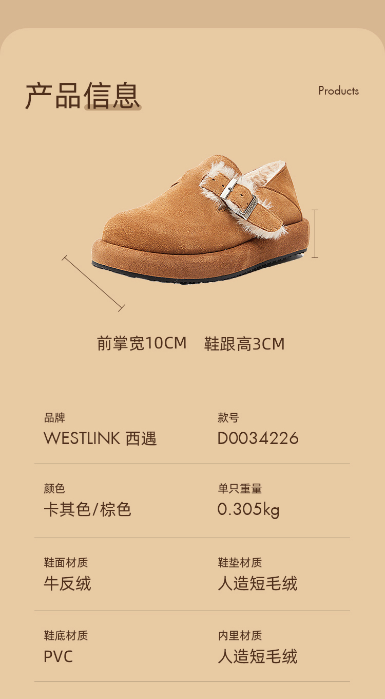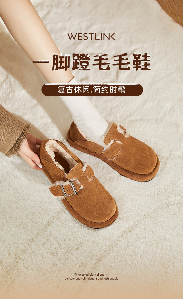 西遇勃肯鞋女新款秋冬真皮全包两穿加绒毛毛鞋厚底一脚蹬单鞋D0034226