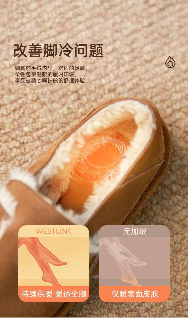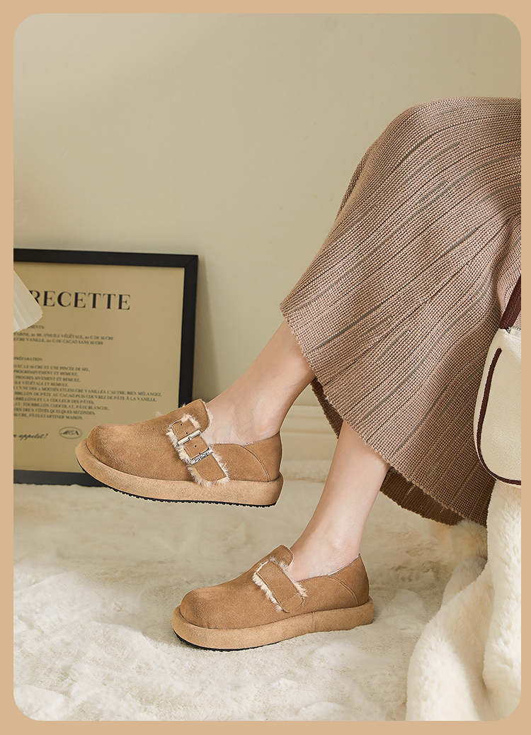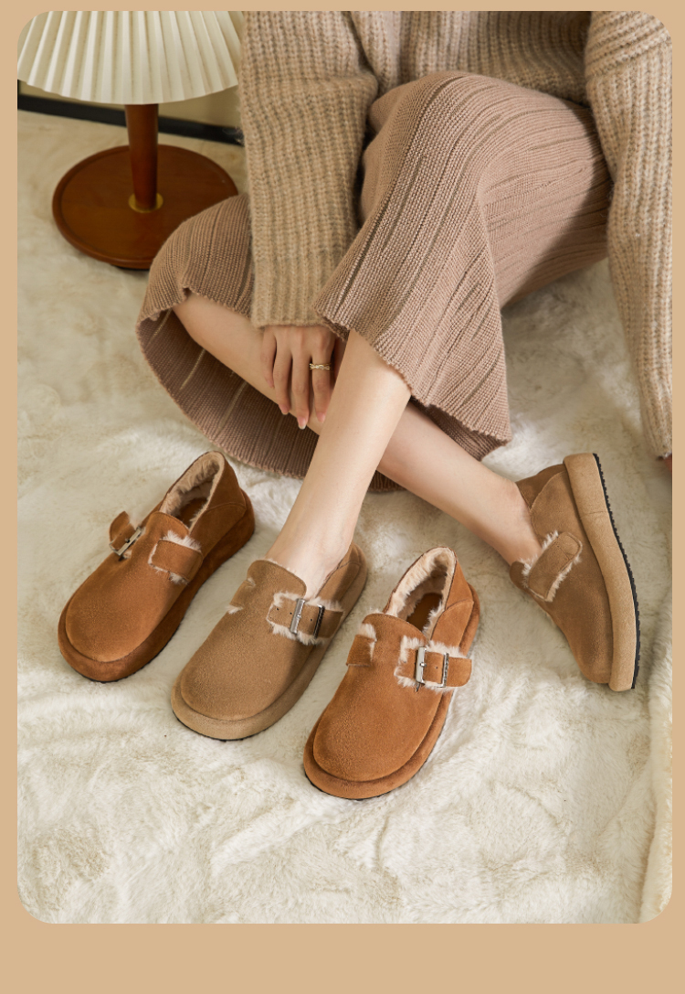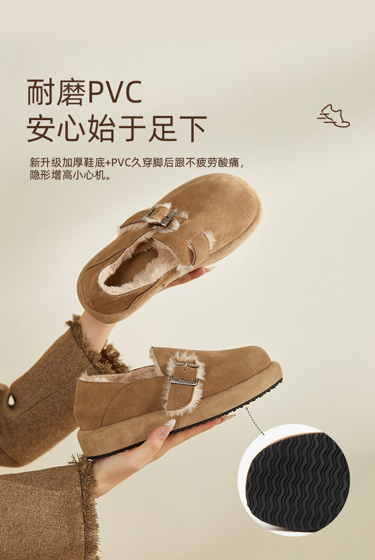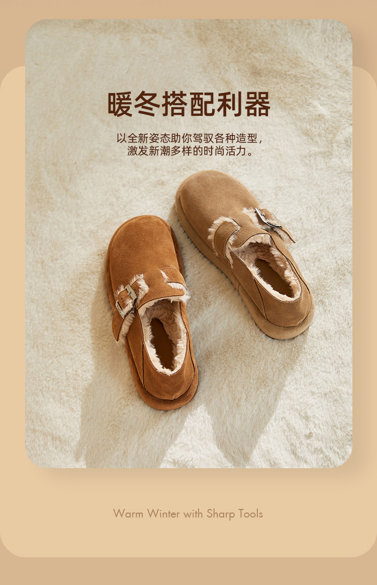 西遇勃肯鞋女新款秋冬真皮全包两穿加绒毛毛鞋厚底一脚蹬单鞋D0034226