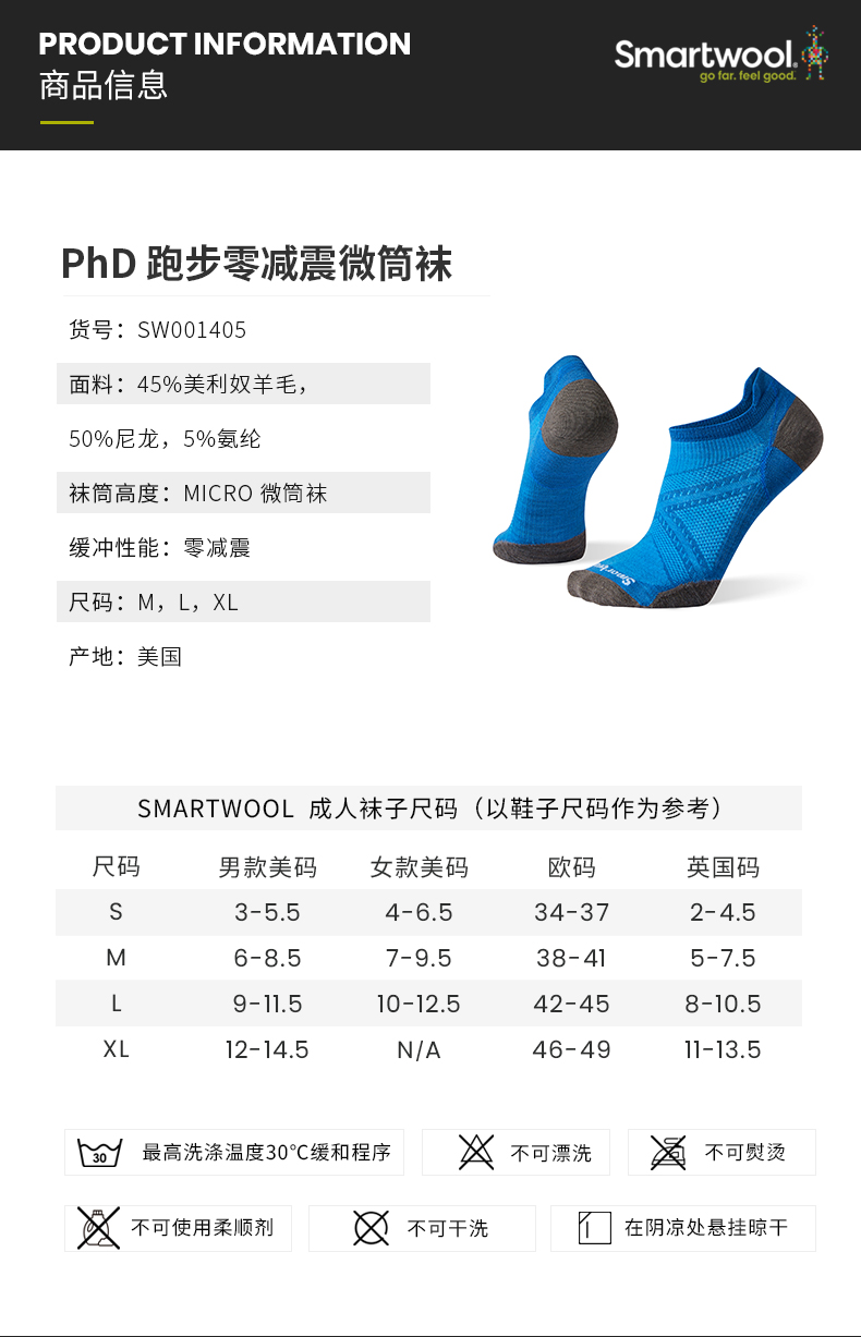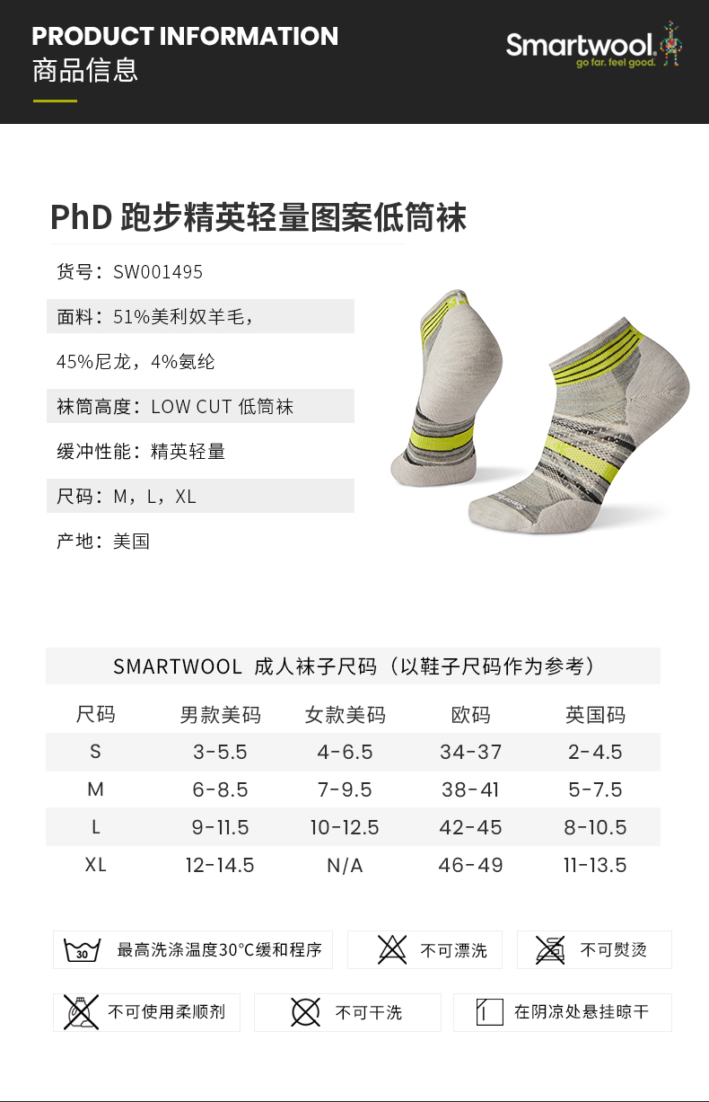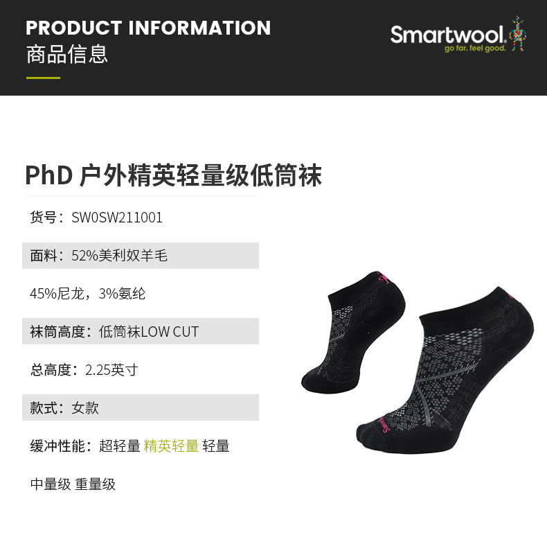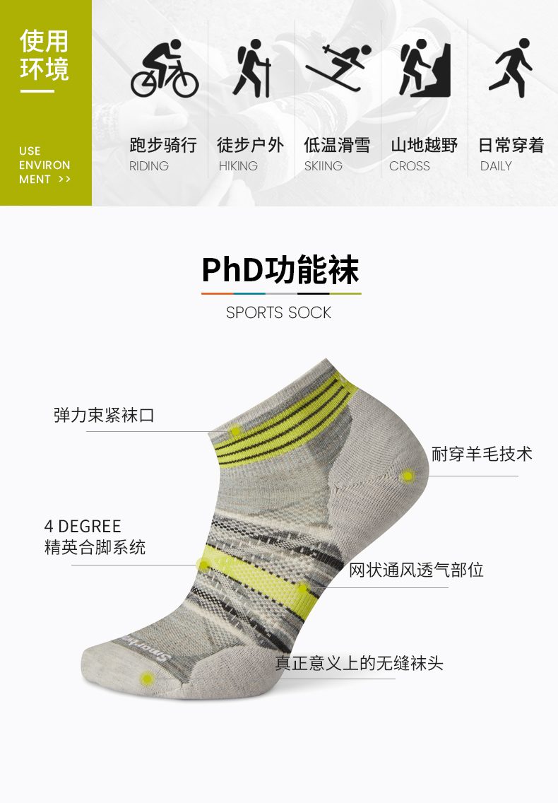 Smartwool PhD 跑步精英轻量缓震短筒袜 跑步及踝袜羊毛袜