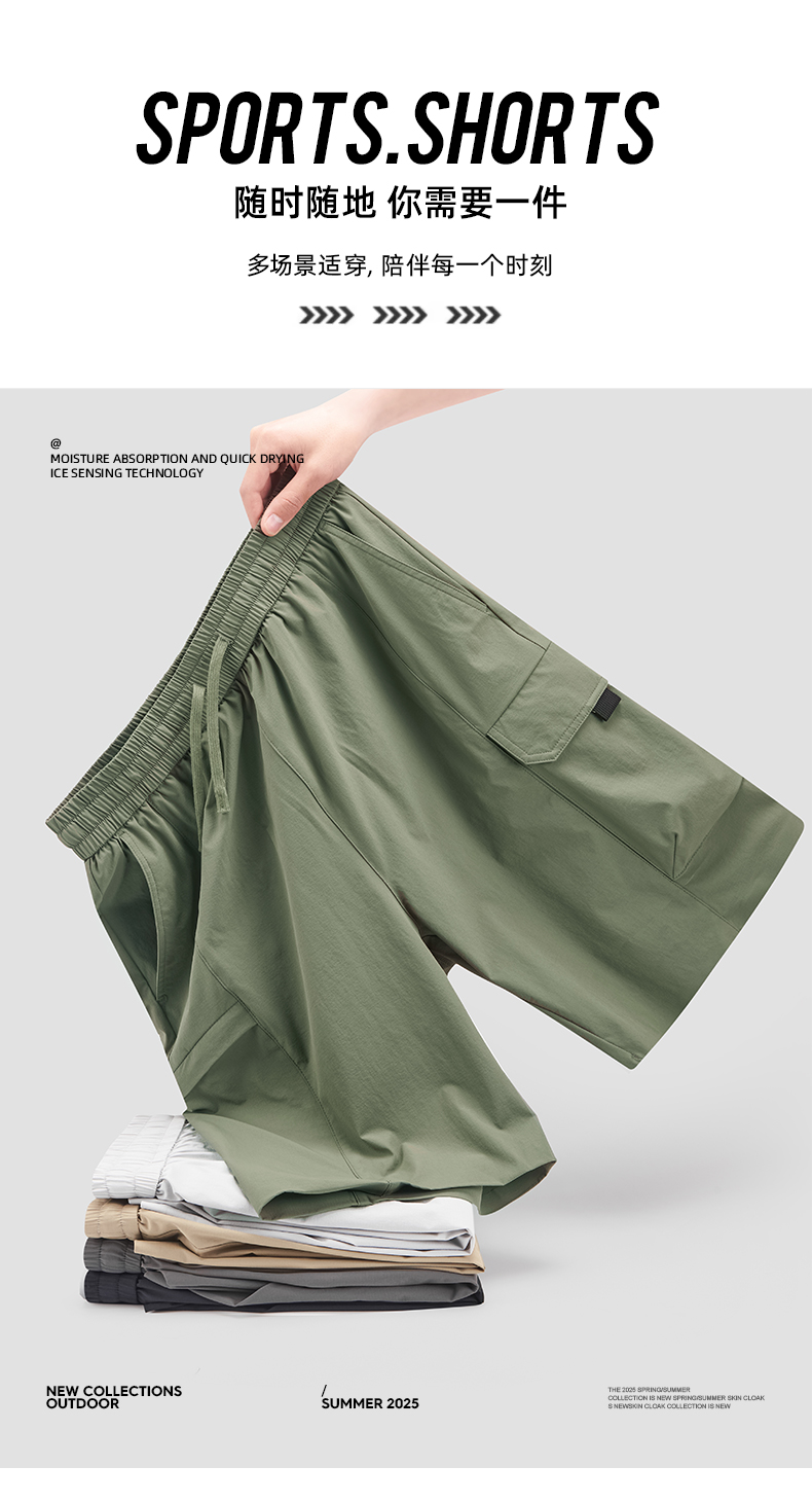 LUCKY DEER/夏季冰感速干透气多袋五分裤户外运动休闲裤