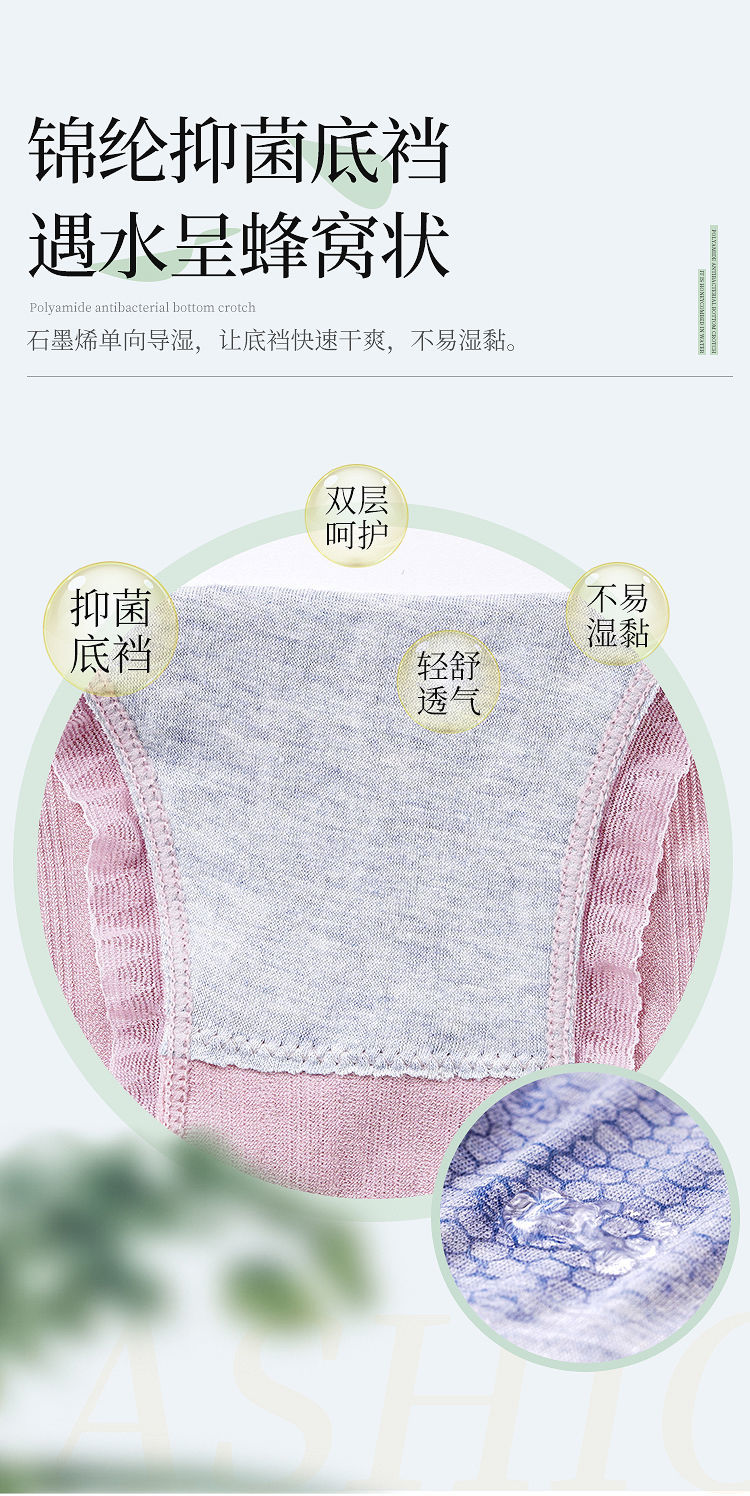 【4条装】5.0植物板蓝根女士内裤石墨烯棉裆中腰性感提臀三角内裤内衣板蓝根纤维内裆,远离异味、瘙痒!单向导湿,透气不闷汗!柔软亲肤面料,不紧勒,无痕内裤!