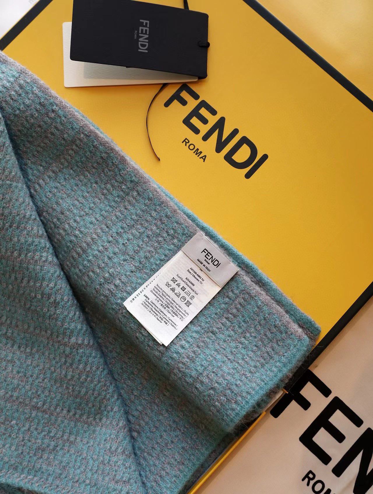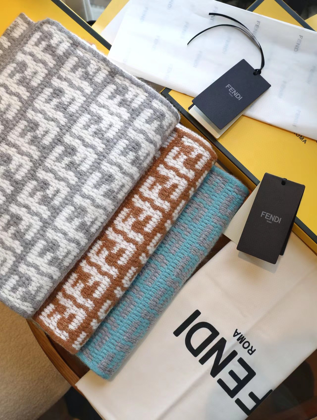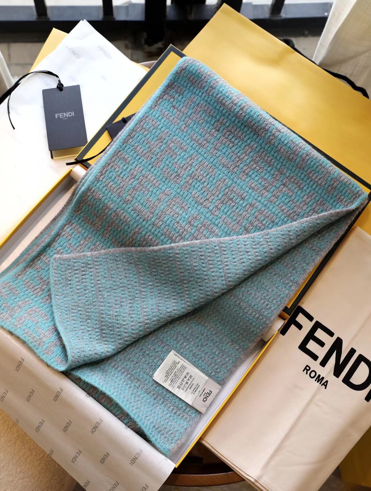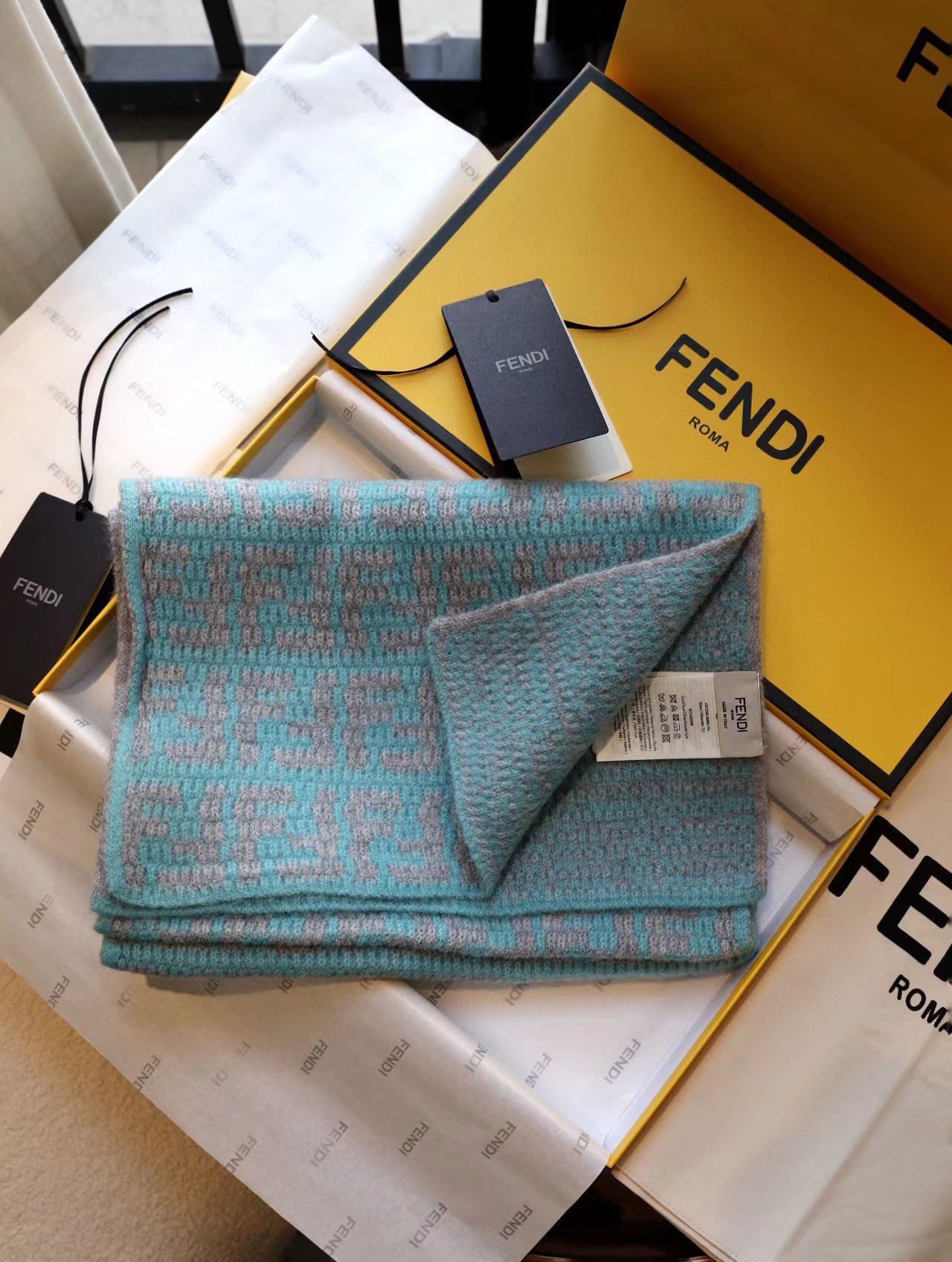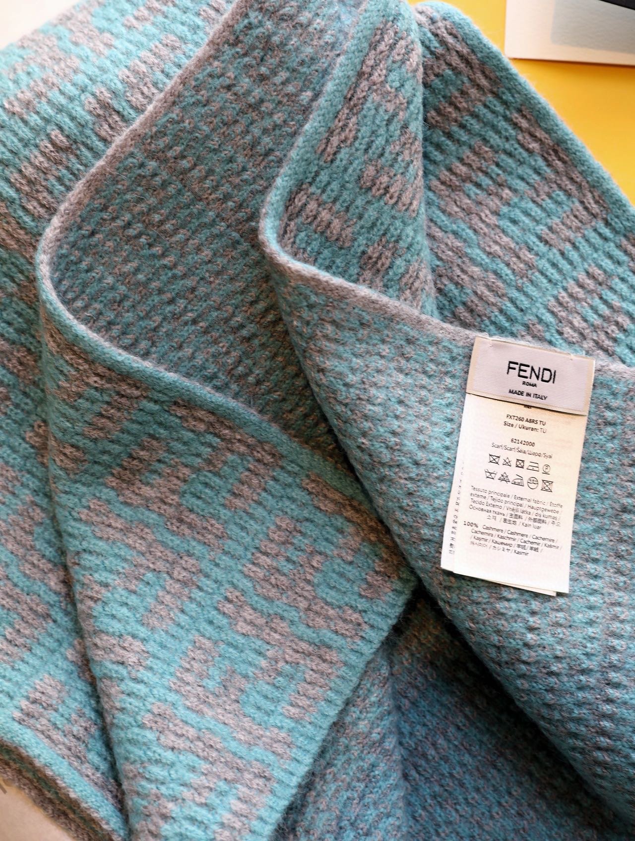 软羊绒围巾。全幅撞色FF图案设计提花