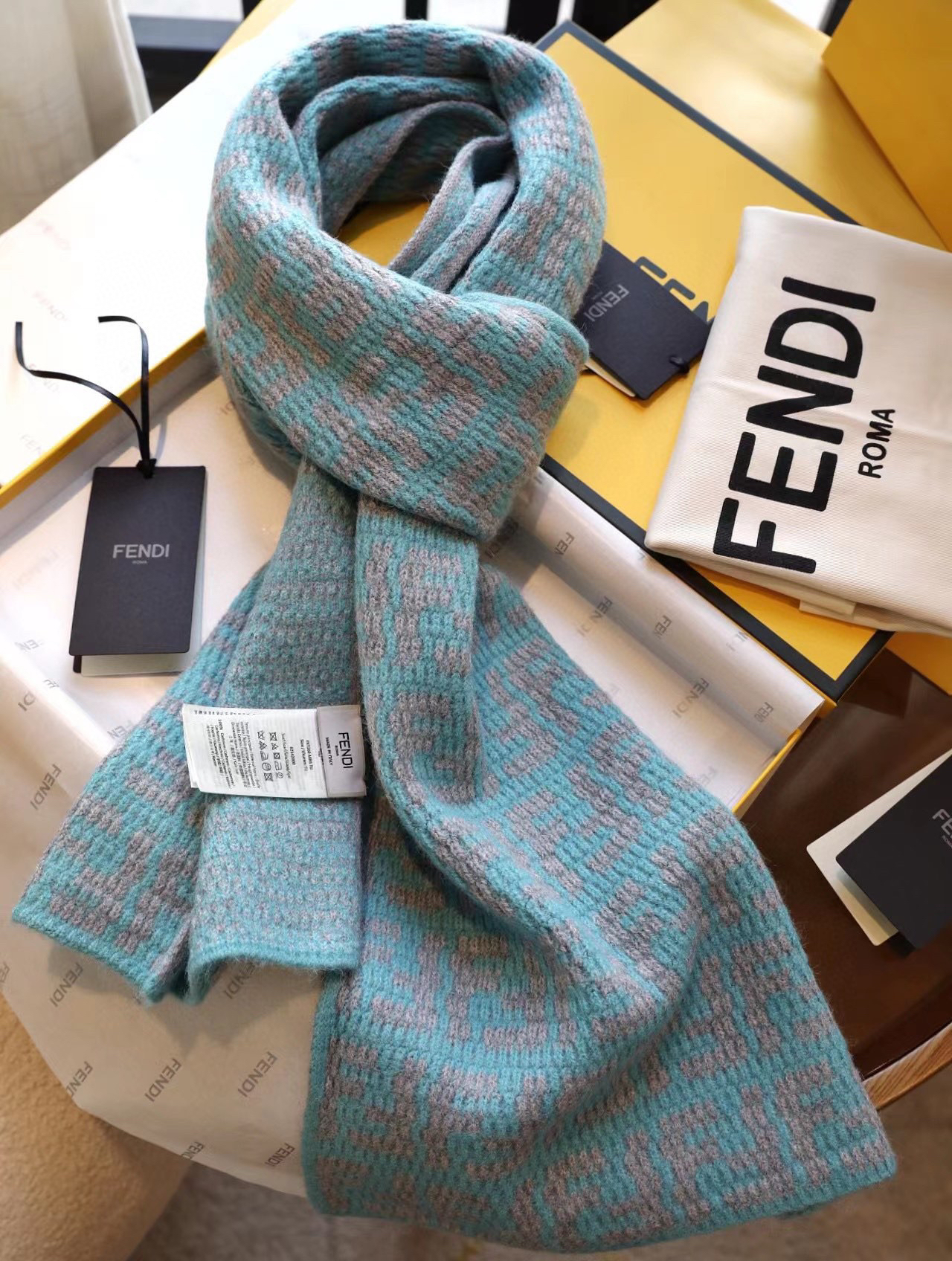 经典的 双F 法棍式logo布满围巾 看似简单