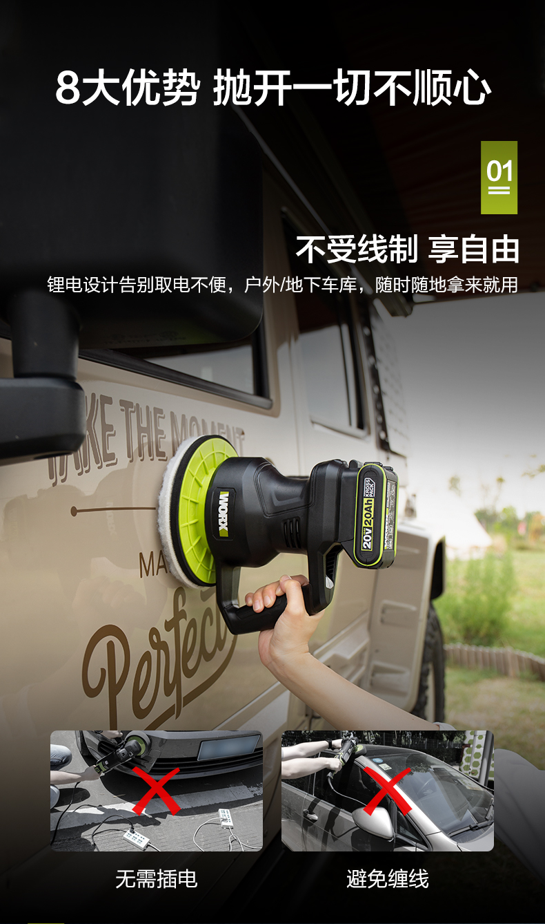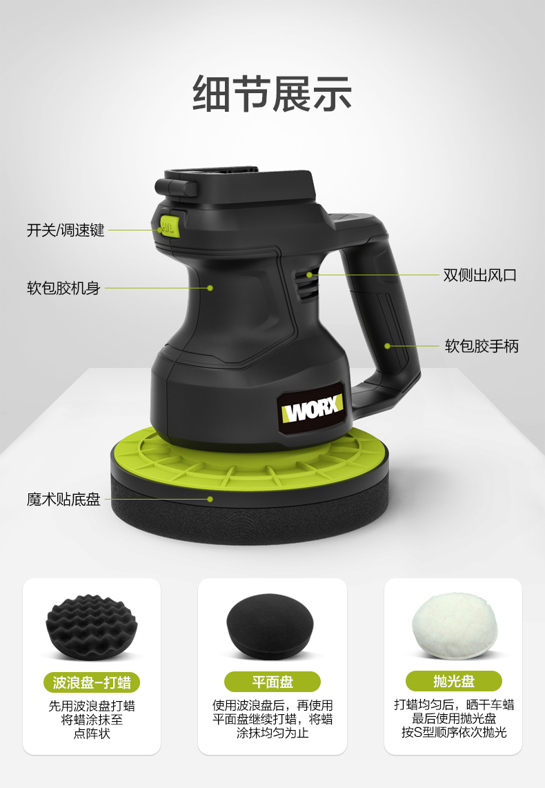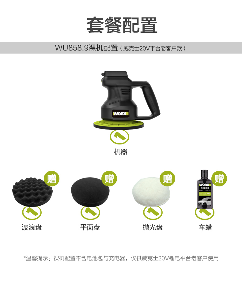 威克士汽车抛光打蜡机WU858地瓷砖车漆去污全套工具家用抛光神器