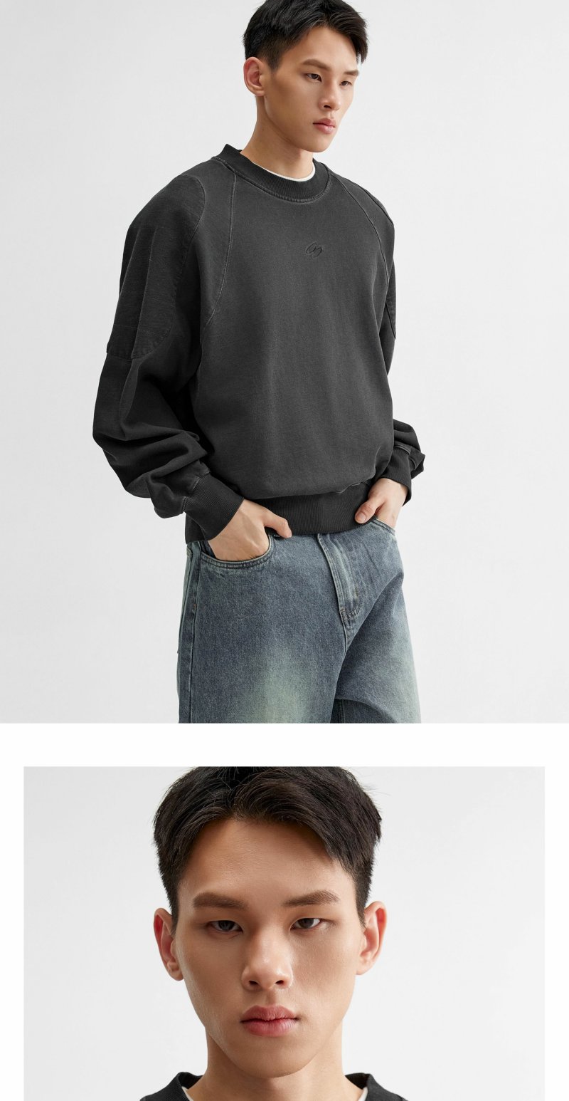 CHINISM折扣季 重磅500G圆领卫衣男春季做旧水洗复古男士套头上衣