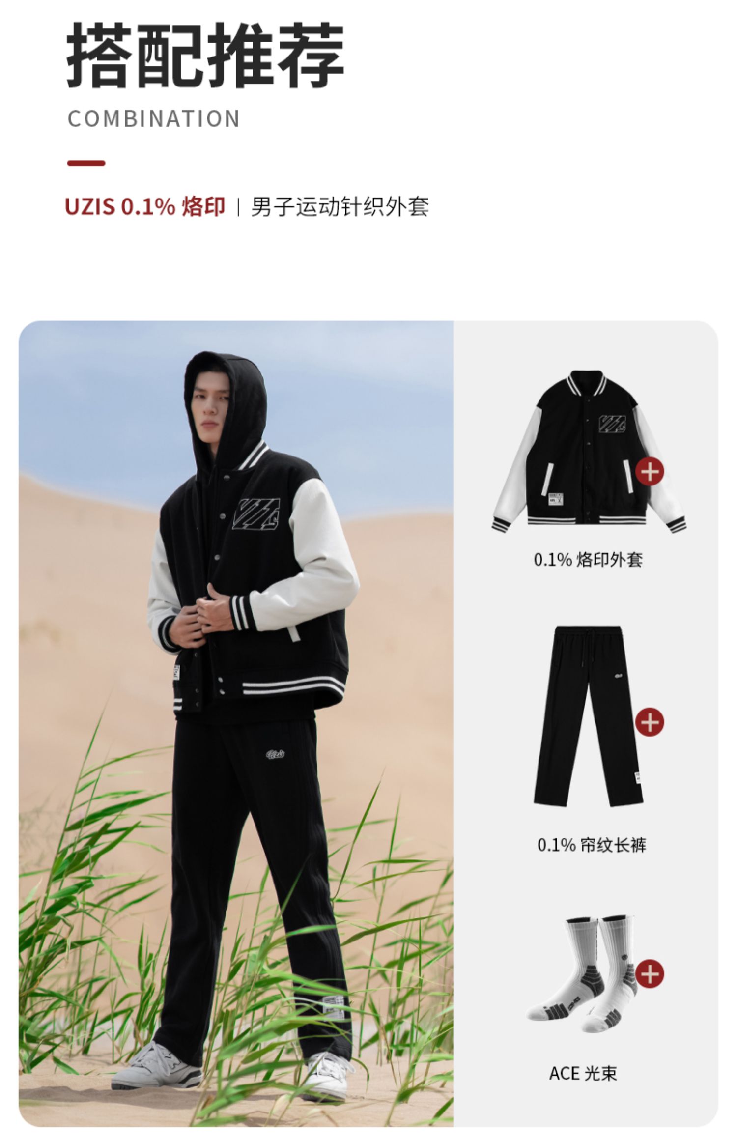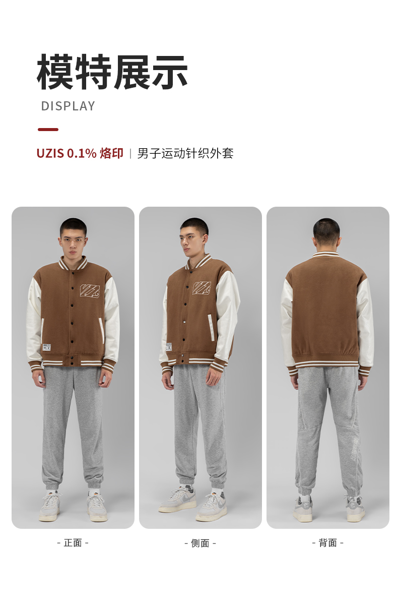 0.1% UZIS运动外套男秋冬针织美式休闲潮上衣保暖拼接夹克[烙印]