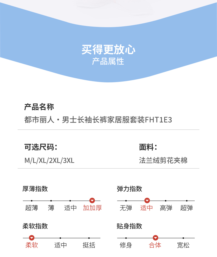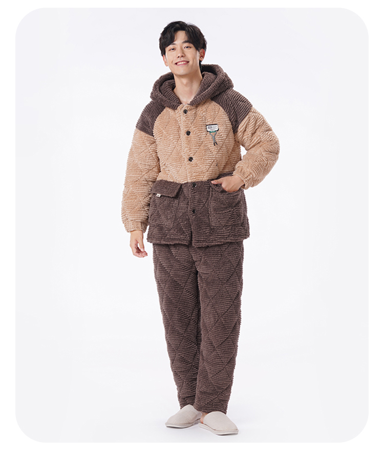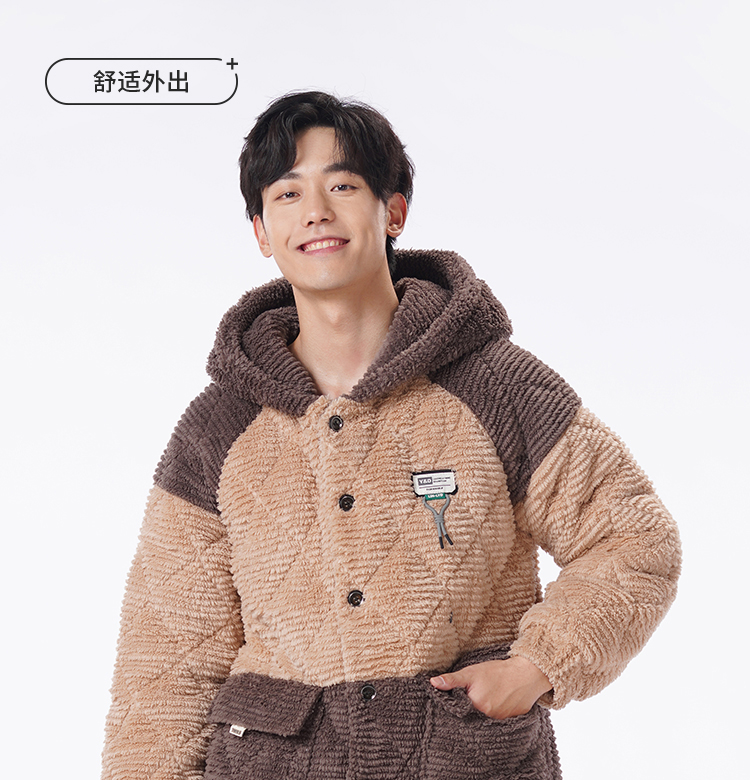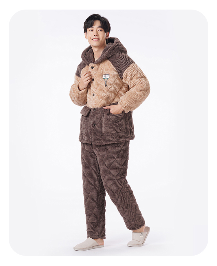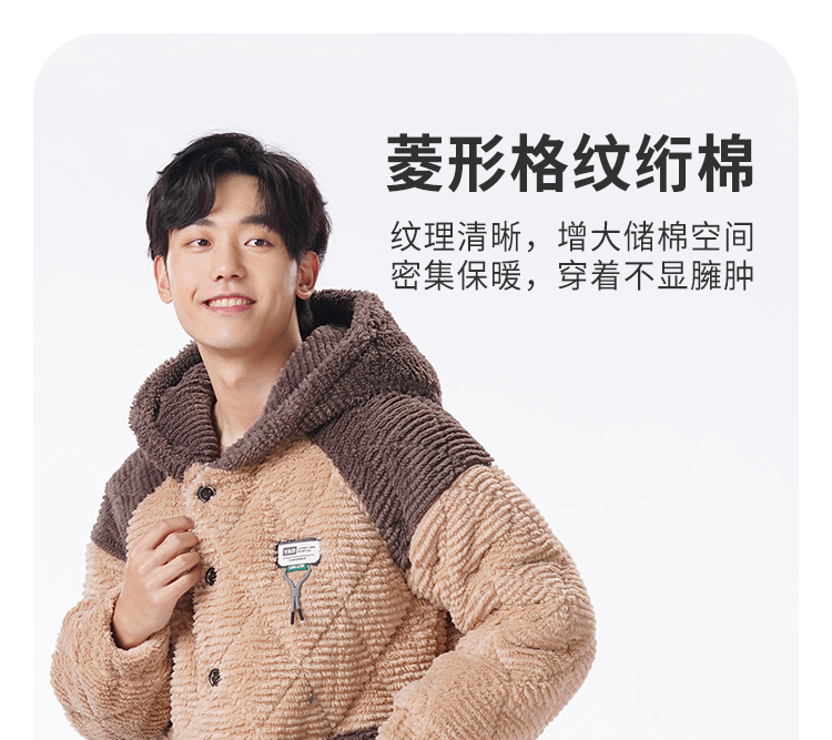 都市丽人都市锋尚睡衣夹棉系列长袖法兰绒剪花夹棉加加厚男士加夹棉套装FHT1E3