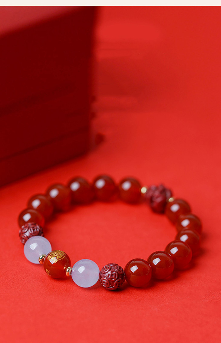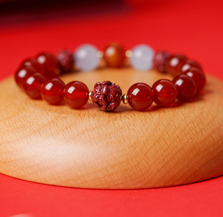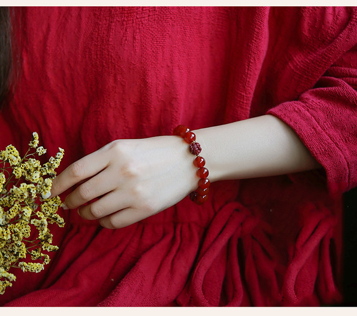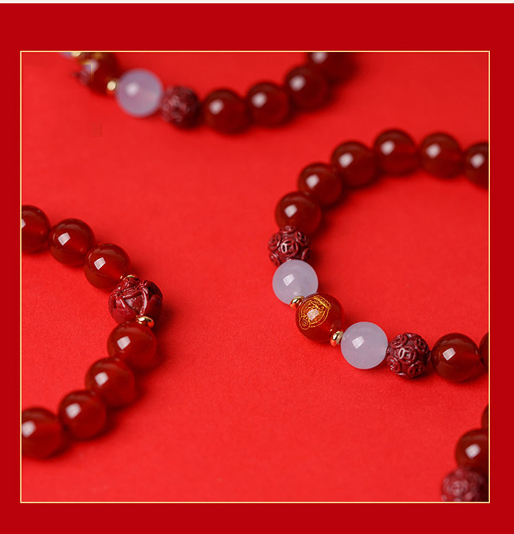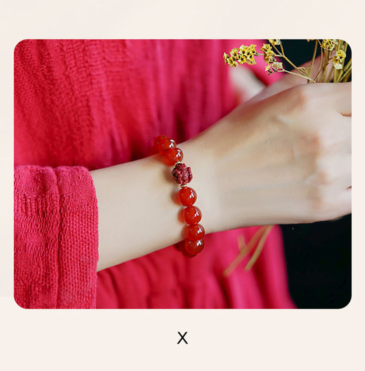 天然红玛瑙材质,搭配朱砂,珠子直径10mm,通用尺寸。