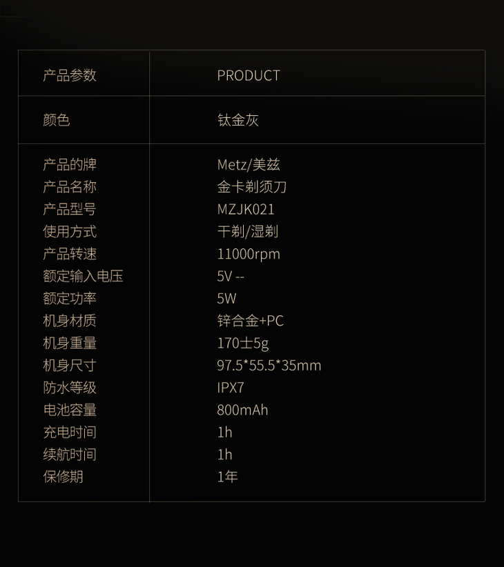 收货清单:剃须刀*1、收纳袋*1、包装盒*1、说明书*1、毛刷*1、充电线*1