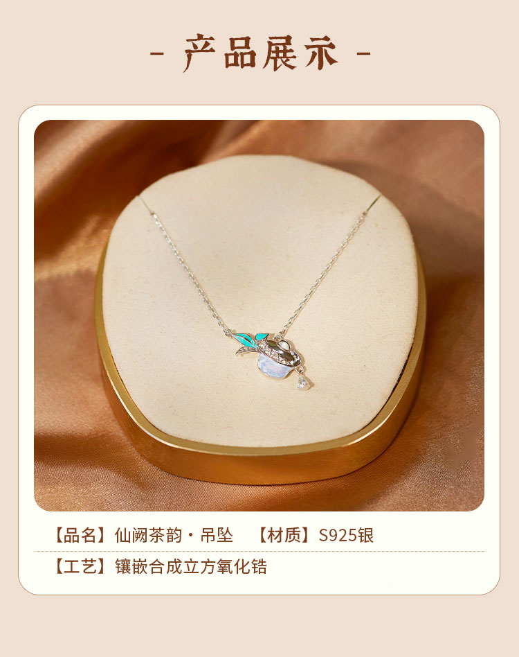 牛首山文创仙阙茶韵·吊坠S925银气质女士精致轻奢项链节日礼物