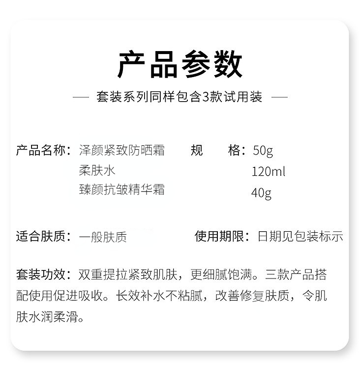 护花呤臻颜三件套(臻颜抗皱精华霜+柔肤水+泽颜防晒霜),滋润抗皱紧致(原臻颜套装,绿套)