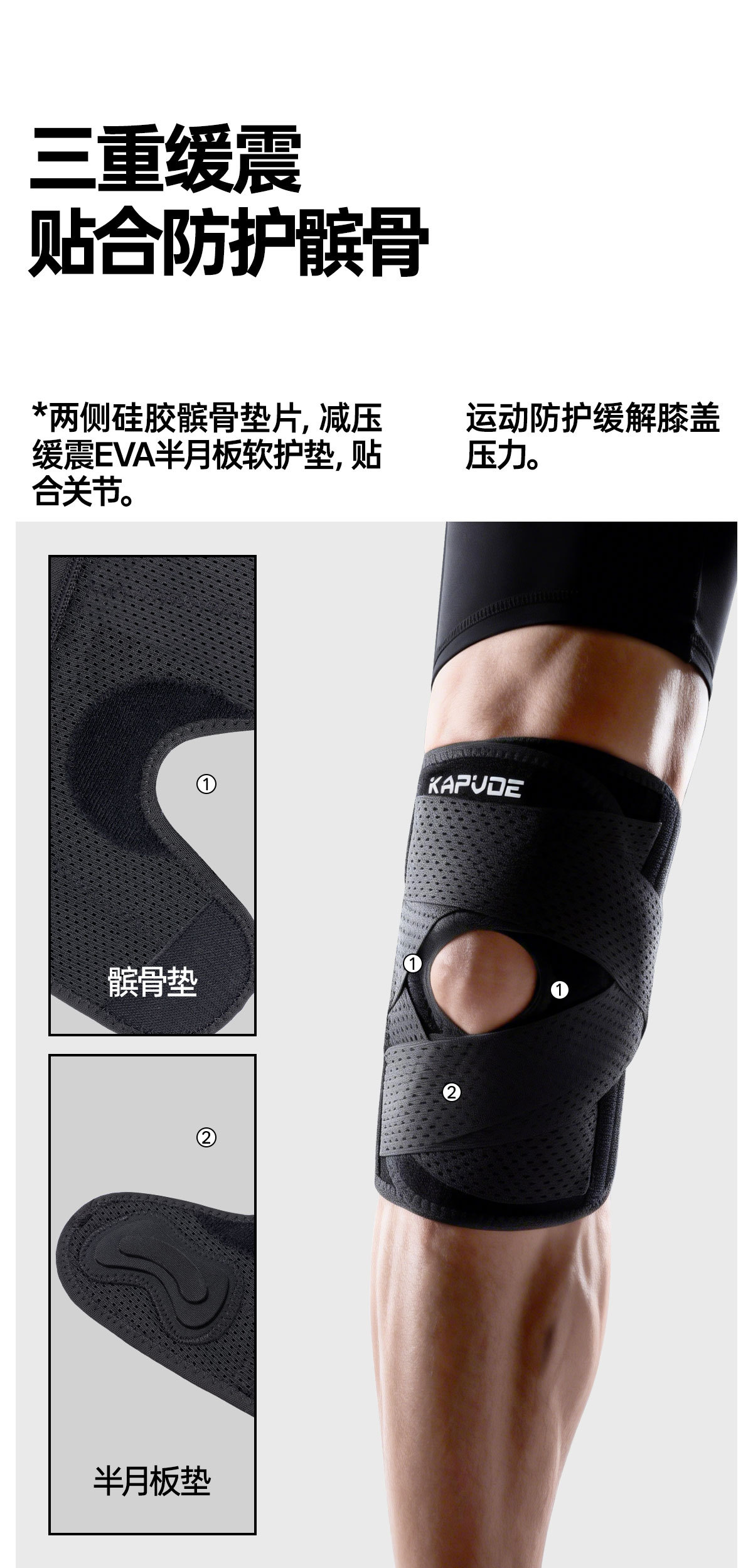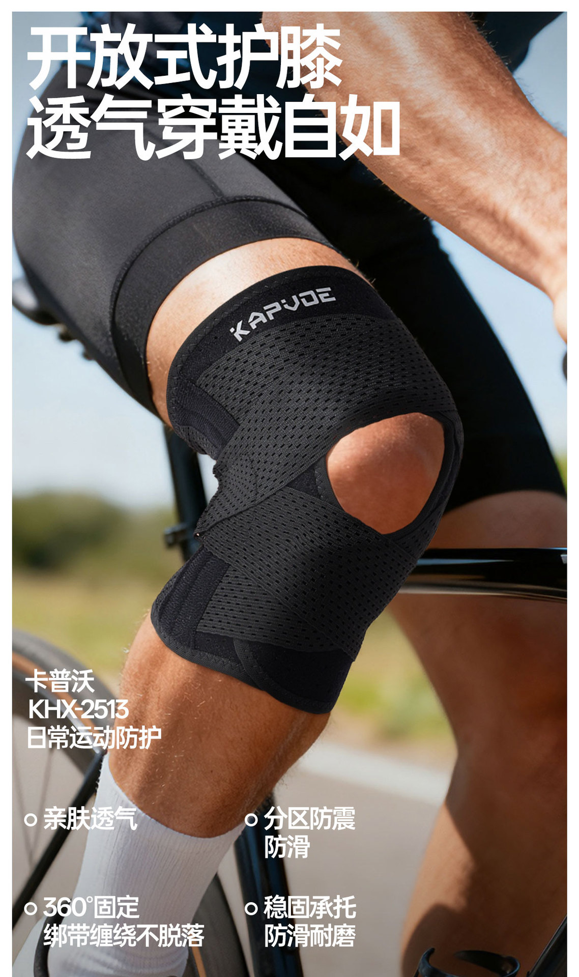 【专业运动护膝】卡普沃KAPVOE/运动护膝透气弹力绑带运动护膝男女半月板运动保护套