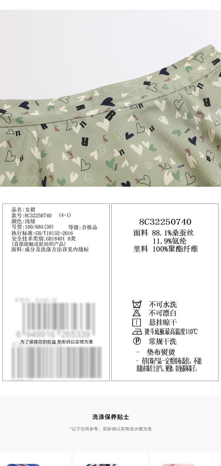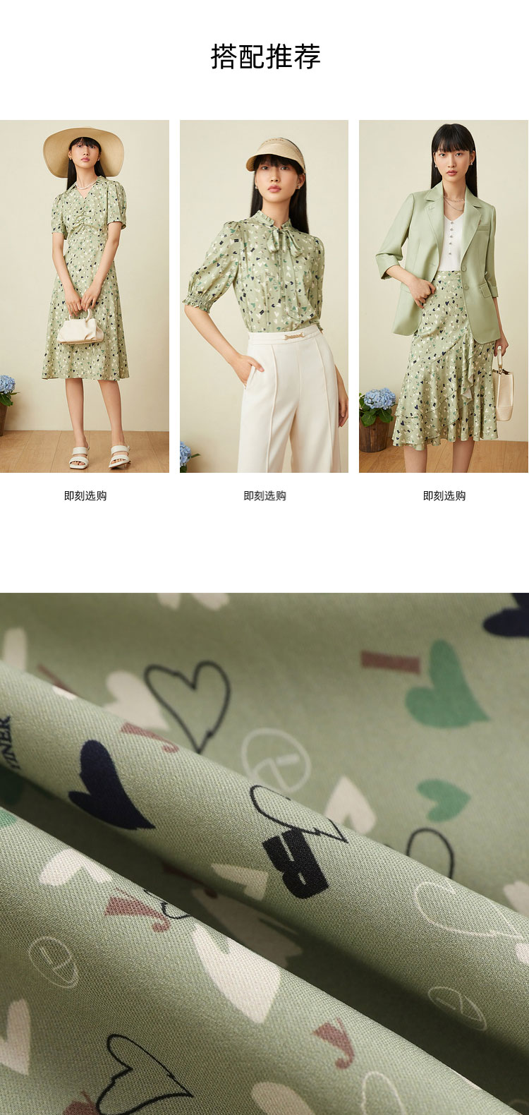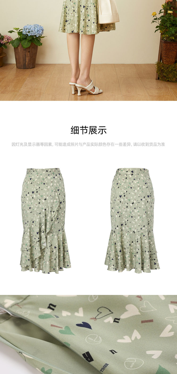 音儿2022夏季新款爱心印花蚕丝鱼尾半身裙8c32250740