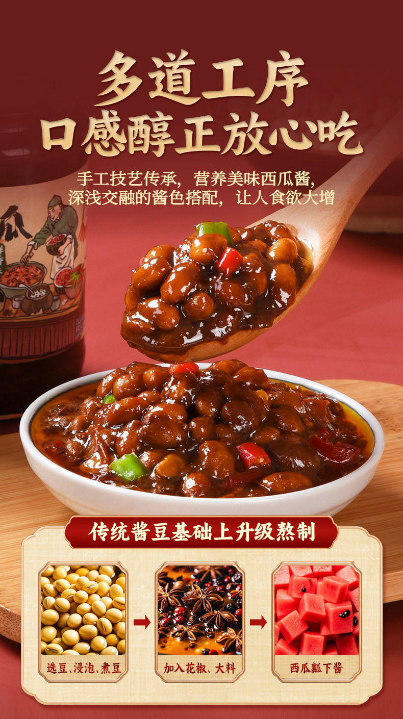 西瓜酱河南特产肉夹馍酱西瓜酱豆正宗西瓜拌面酱家用纯手工老式豆酱黄豆酱火锅蘸酱烤肉蘸酱故乡风味蘸酱料