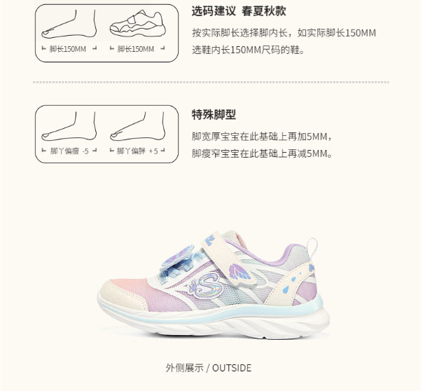 小斯凯奇女童鞋2022春新款梦幻蝴蝶运动鞋302548L