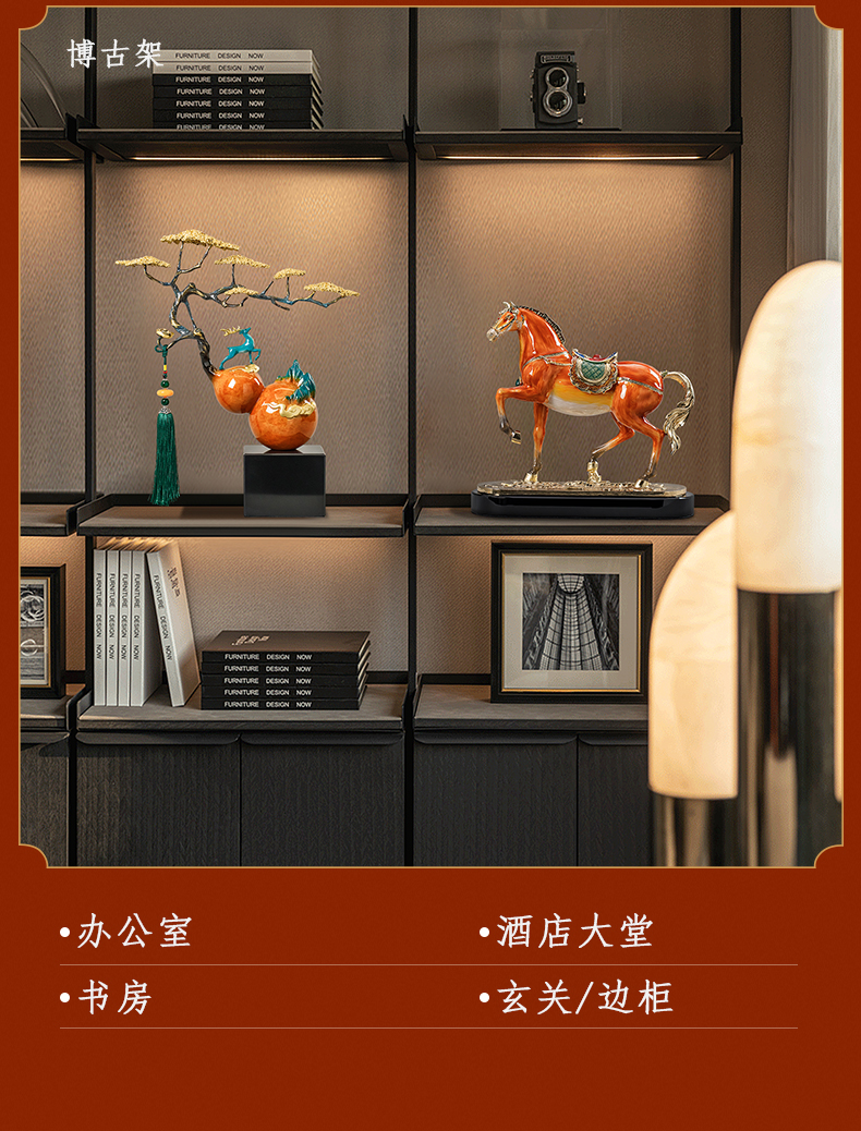 年年有余铜金鱼书柜展示柜电视柜艺术工艺品装饰摆件纯铜招财双鱼戏水摆件 220*80*310客厅书房办公室玄关新中式摆件新婚贺礼乔迁贺礼