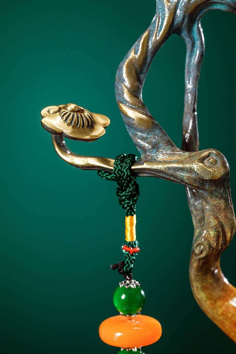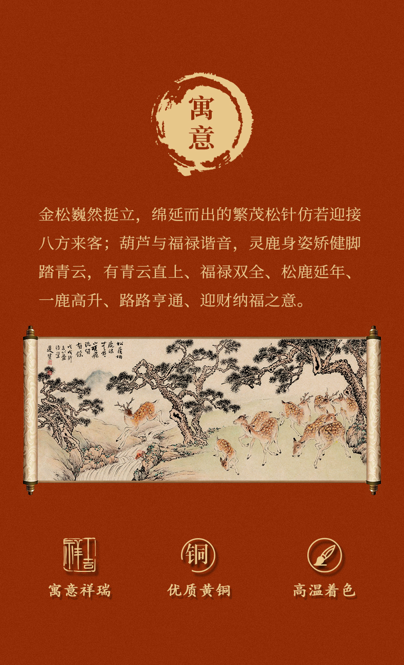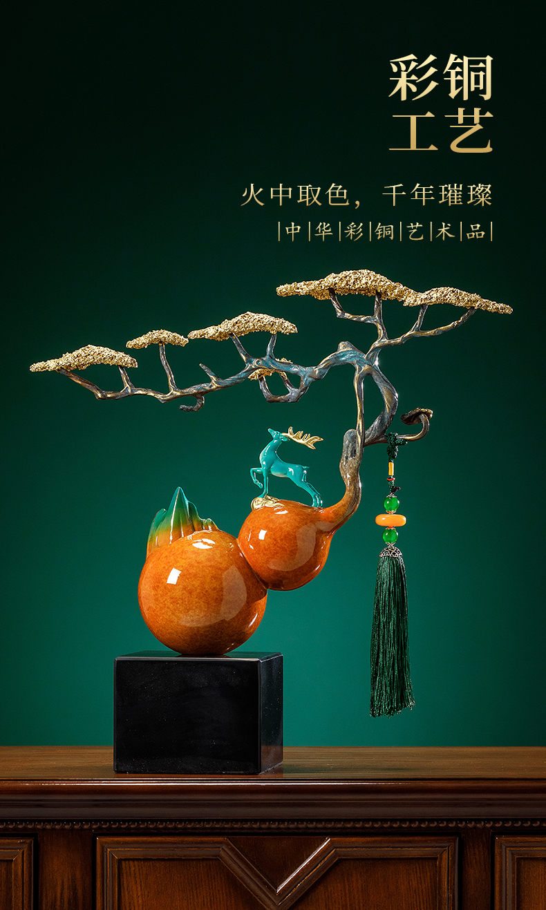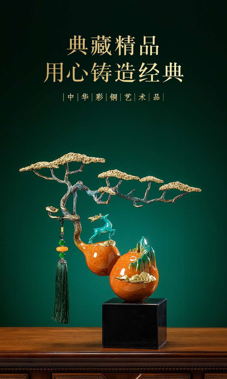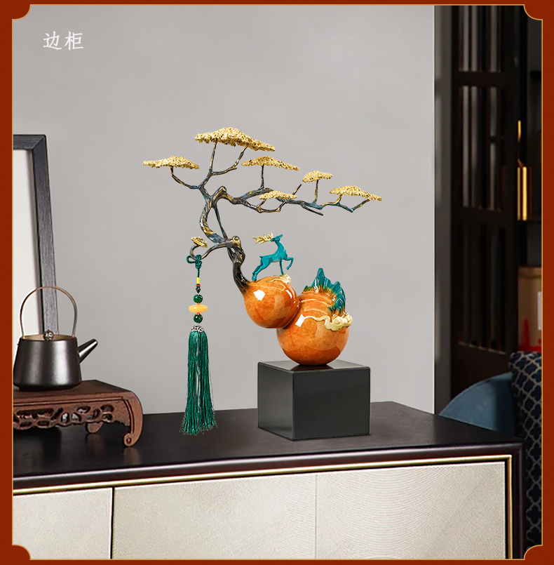E-QK-BJ1326A/B 福来禄来(绿色/黄色)铜葫芦鹿摆件小号