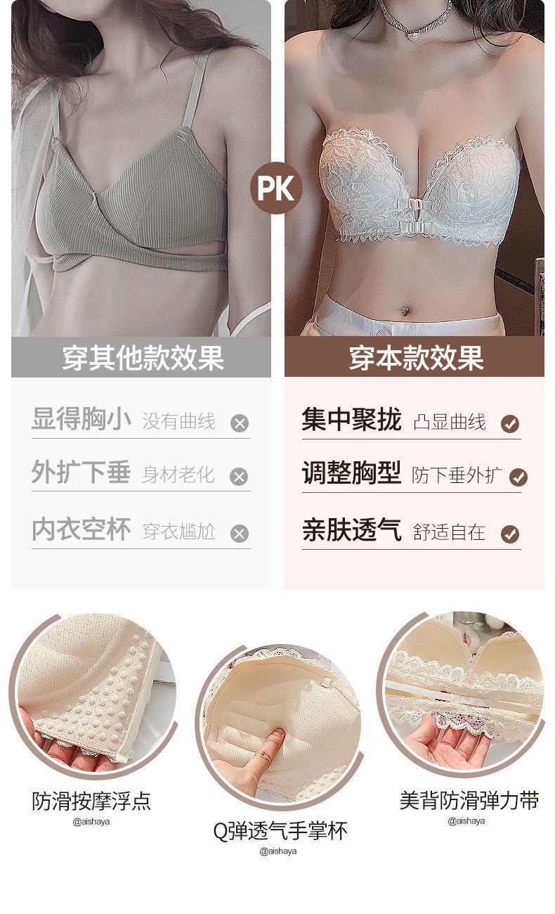 【买一送一 三色可选!!!】性感潮流新款单件文胸 前扣式少女内衣 小胸聚拢防下垂上托收副乳夏季抹胸美背文胸罩