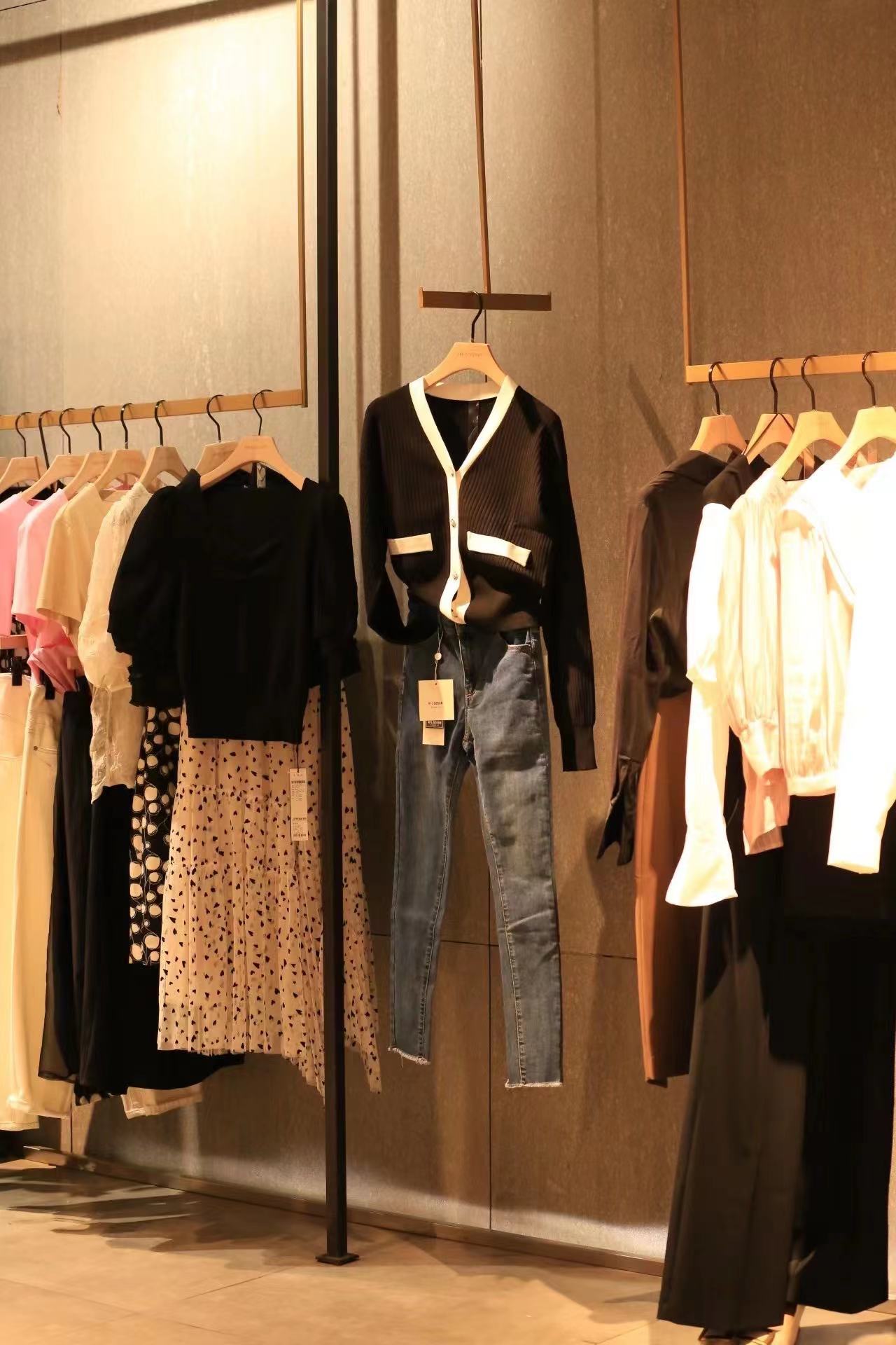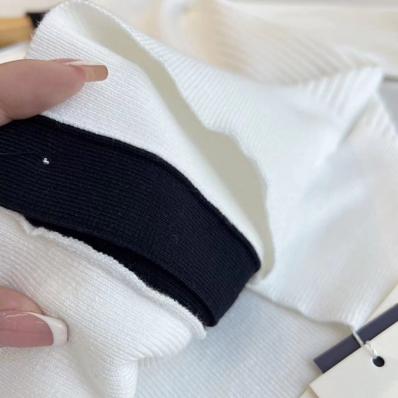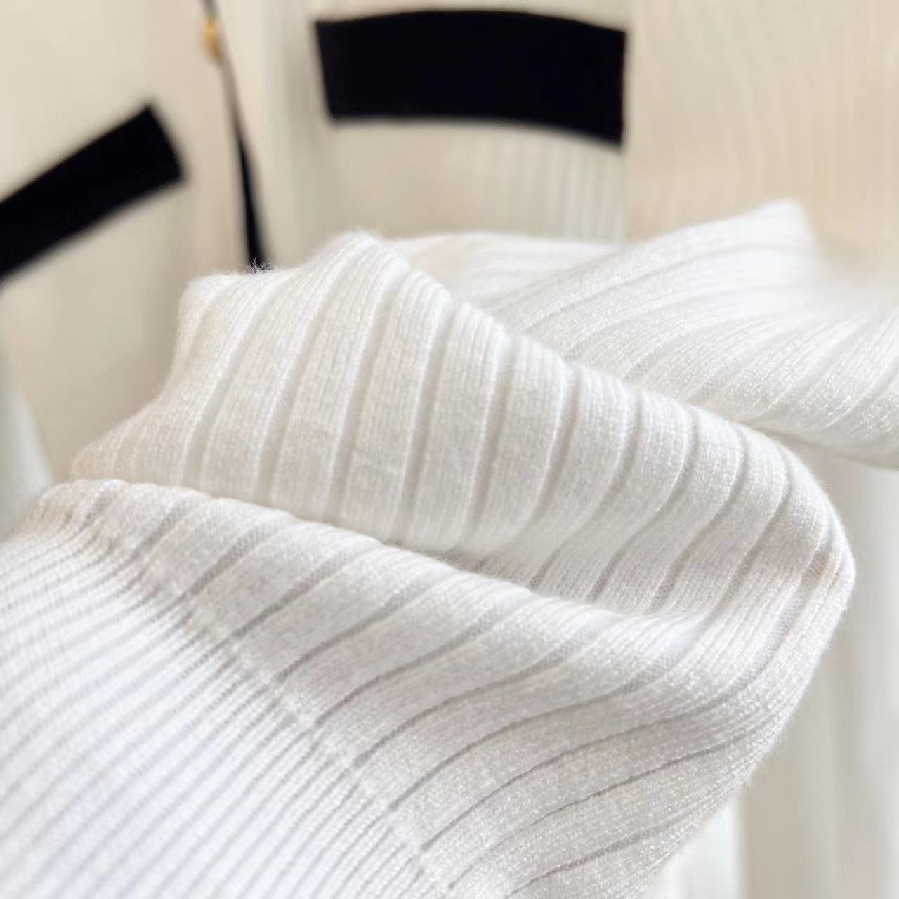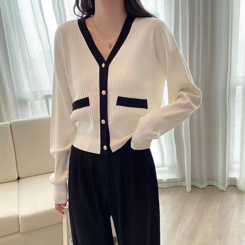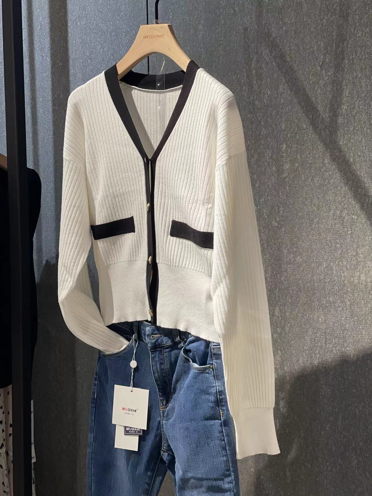 商品名称:小香拼色针织开衫(黑色/米色)均码