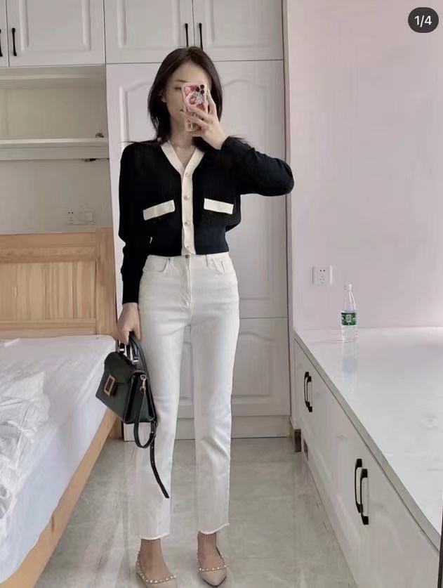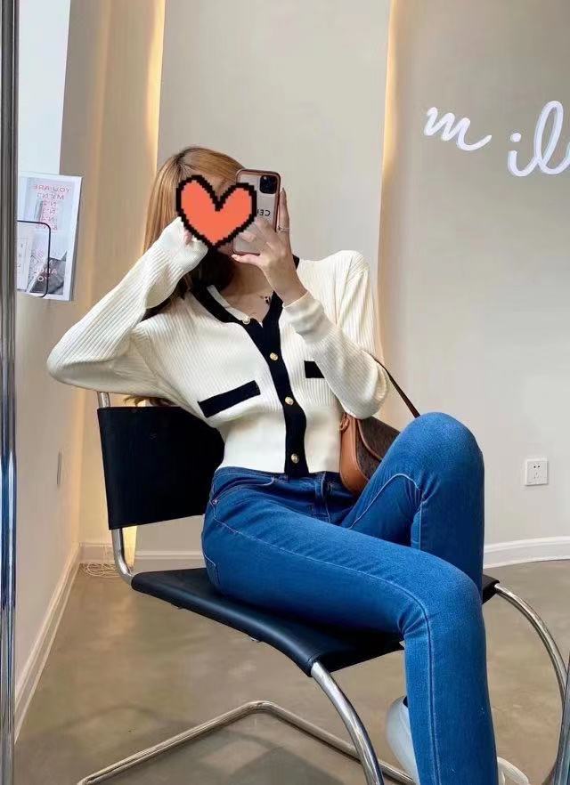❗️经典法式小香开衫,修身设计,罗纹边V领,直门襟修饰颈脖线条!