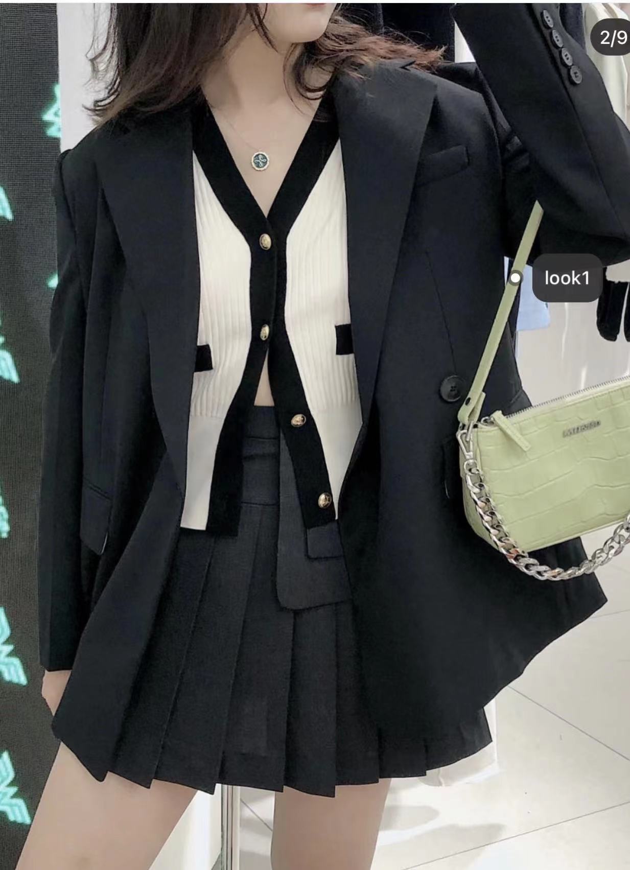 纸片人既视感,经典的撞色门襟装饰,更加显廓形与质感!