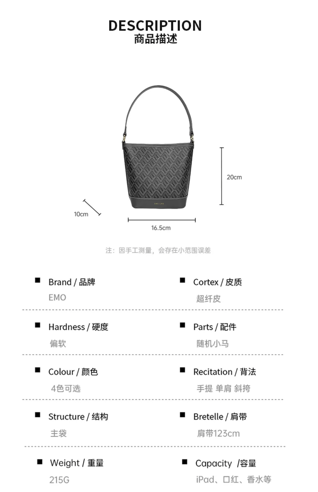 EMO·狗牙小水桶包手提斜挎包大容量通勤包包