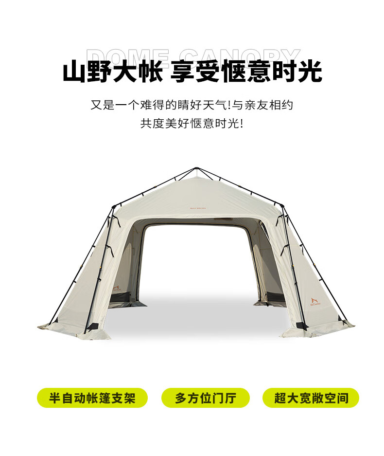 狼行者阔野大号自动穹顶天幕免搭速开露营大天幕帐篷露营防水 白色