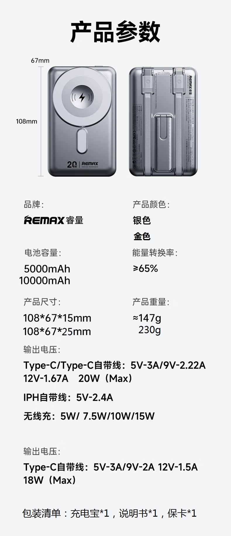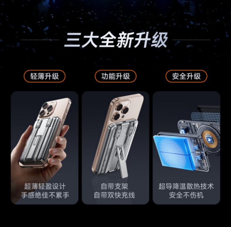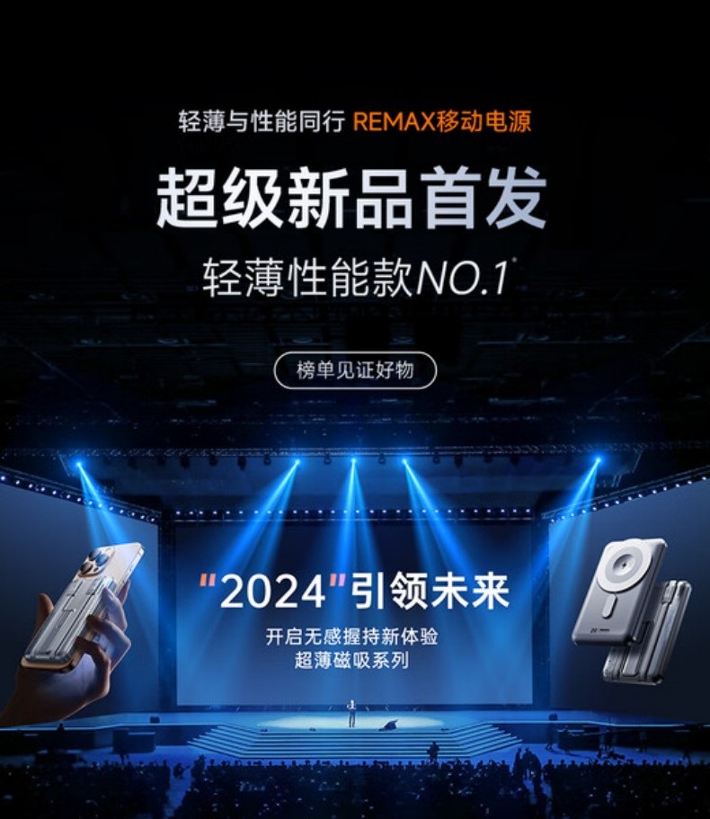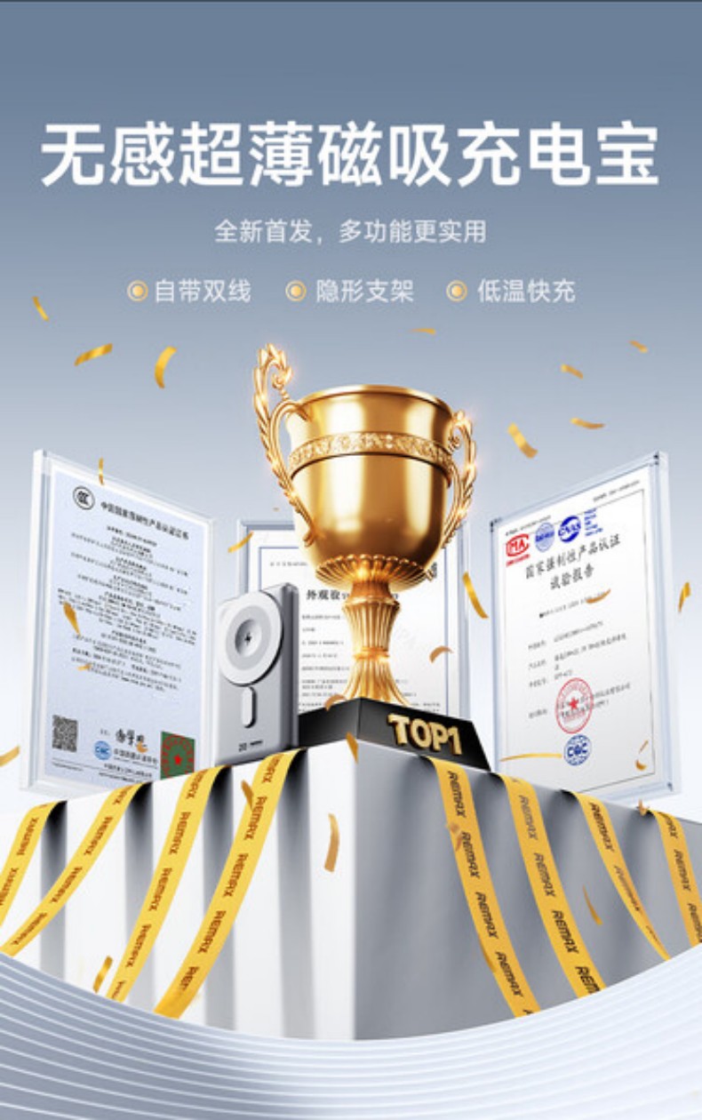 REMAX自带线折叠支架磁吸15W无线充电宝 10000mAh移动电源 CX-2