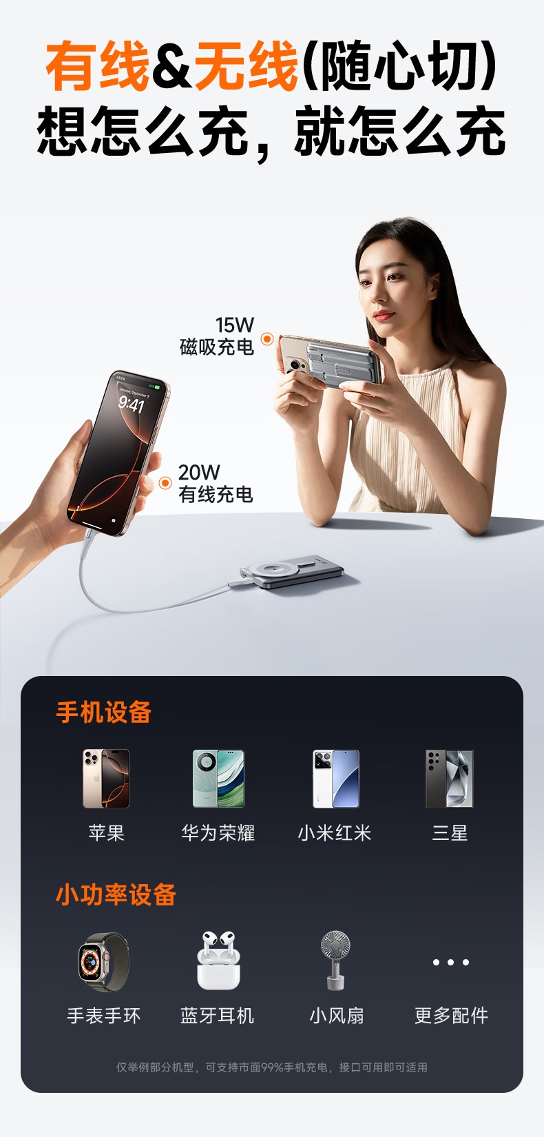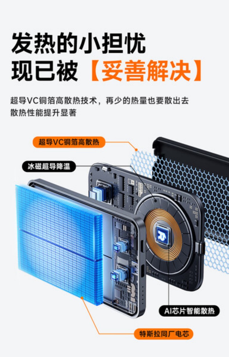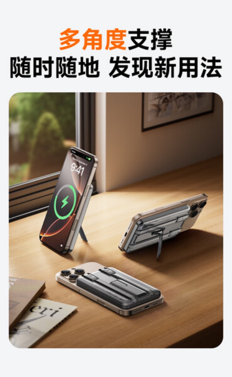 REMAX自带线折叠支架磁吸15W无线充电宝 10000mAh移动电源 CX-2
