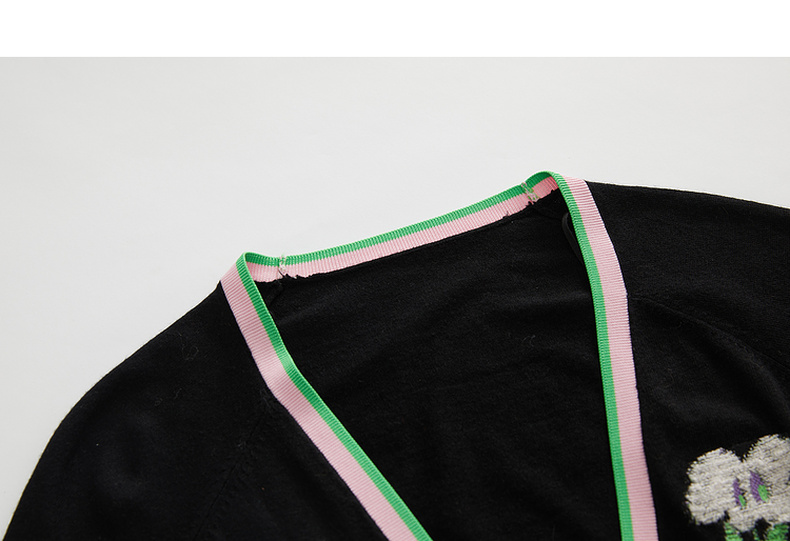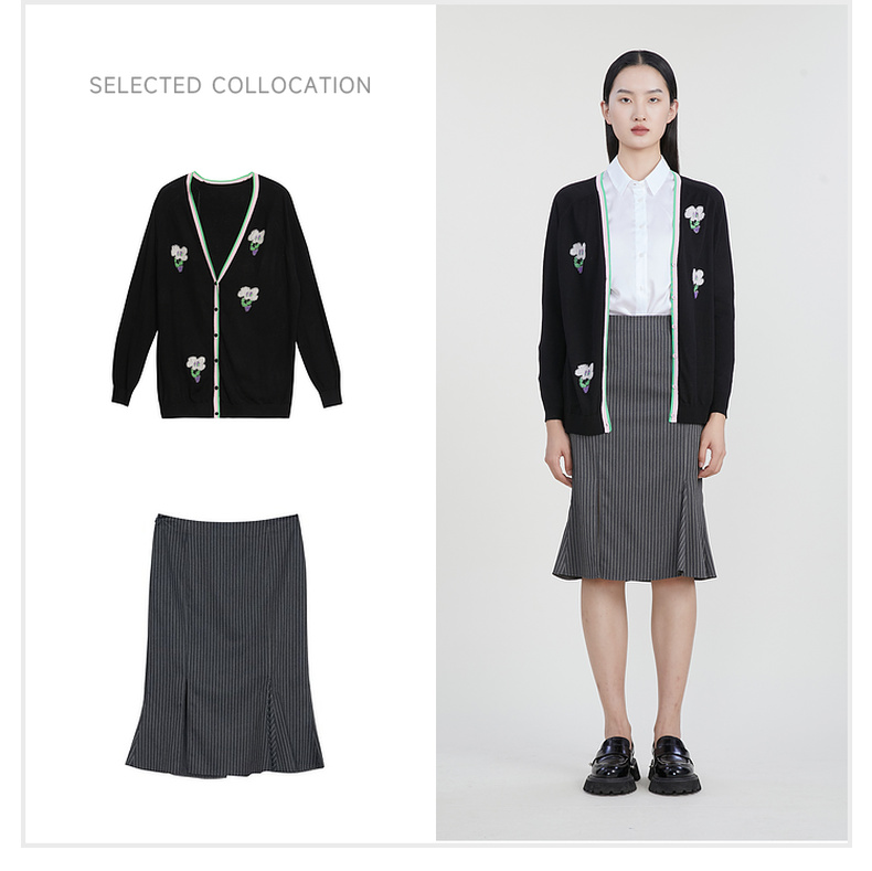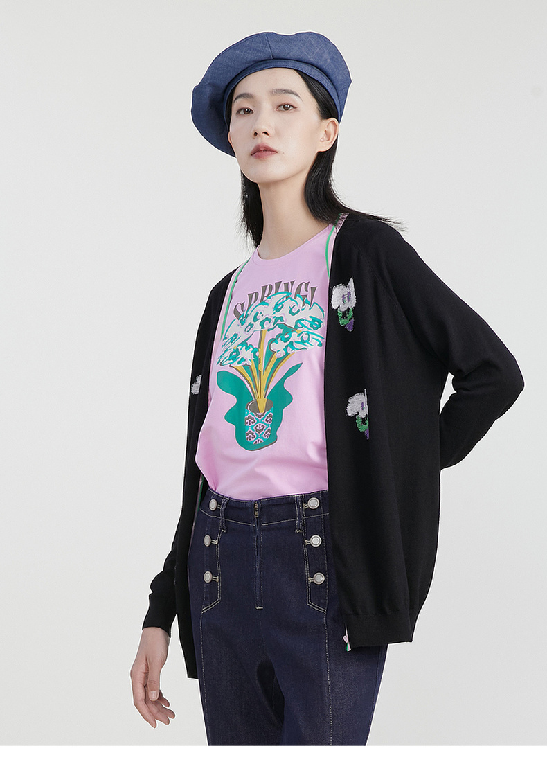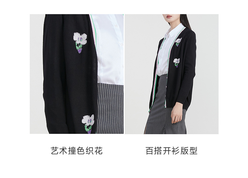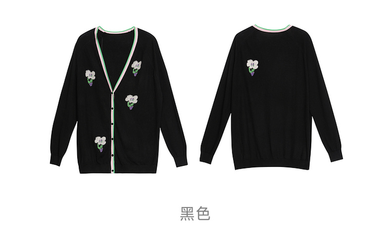 谜底中长款针织开衫女2023春新款时尚绣花宽松毛衫外套231MZ0323