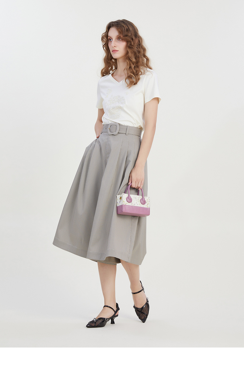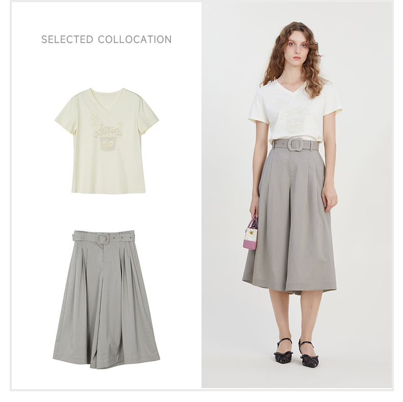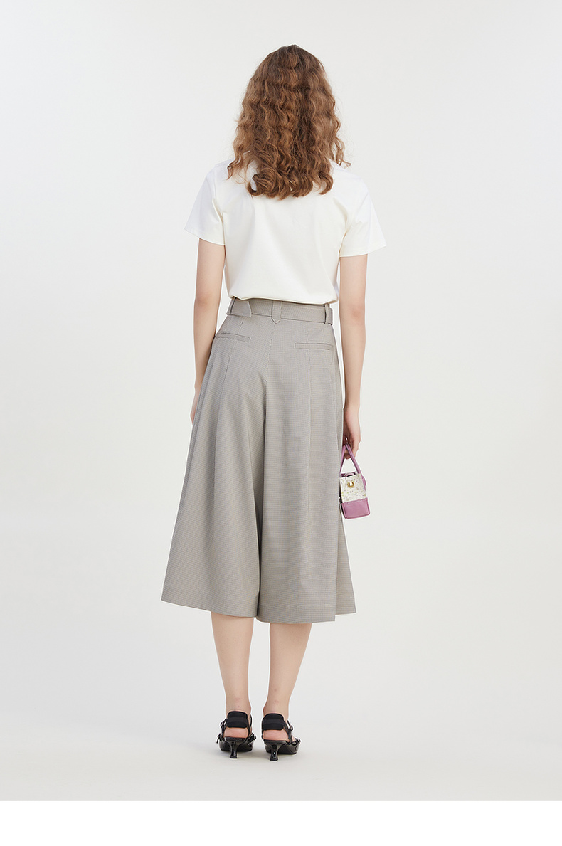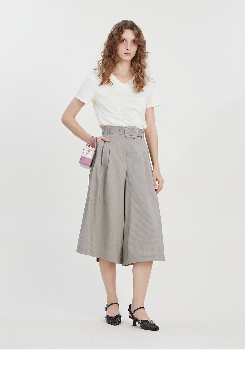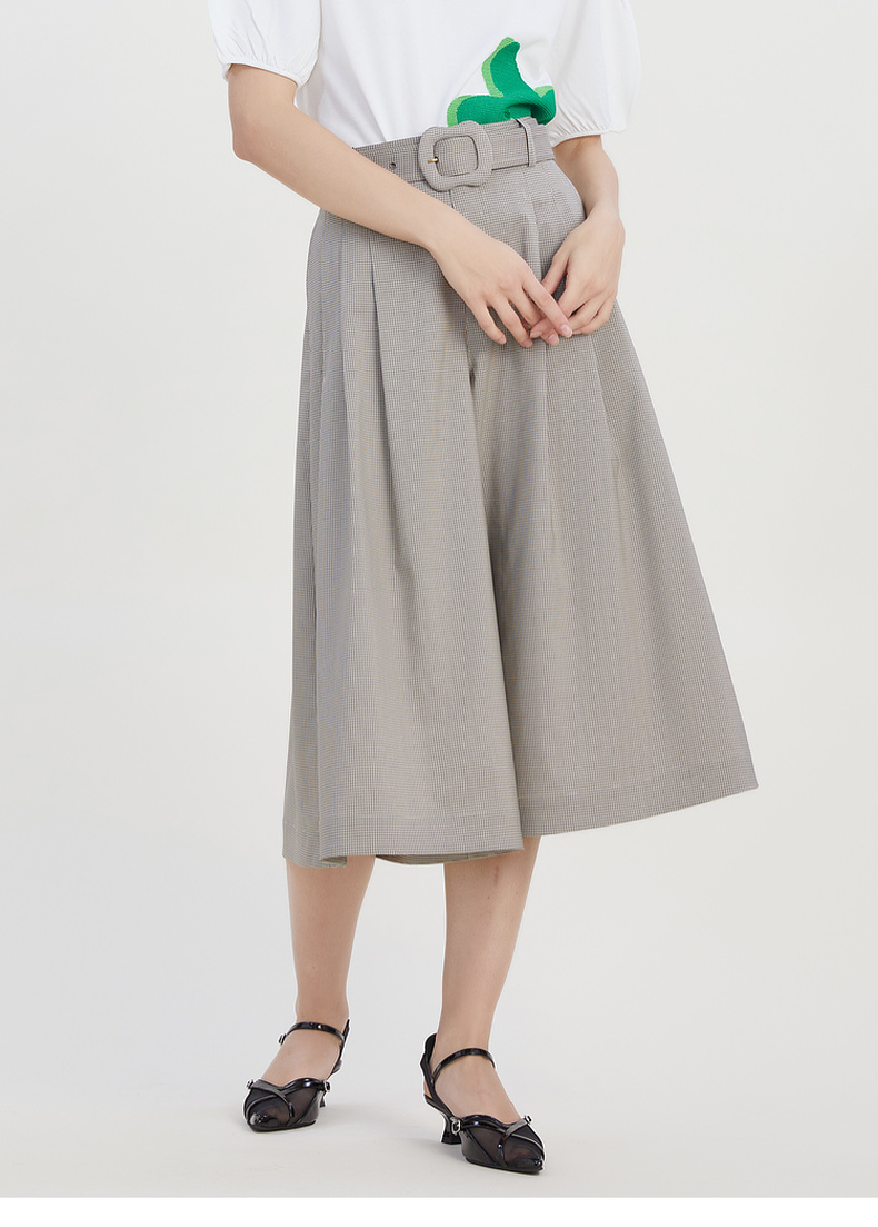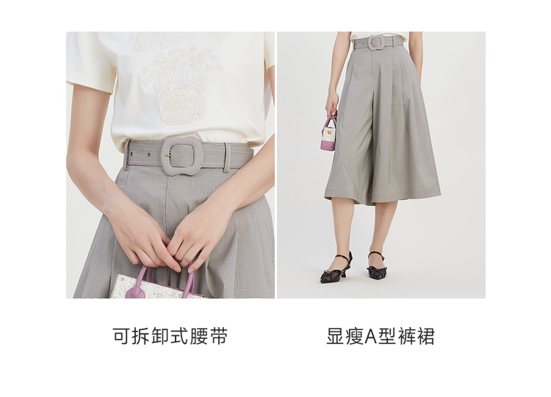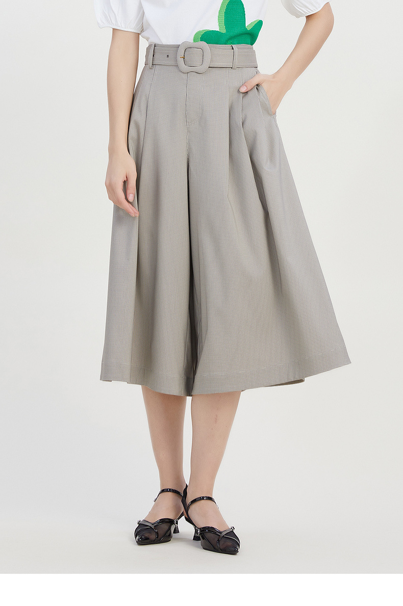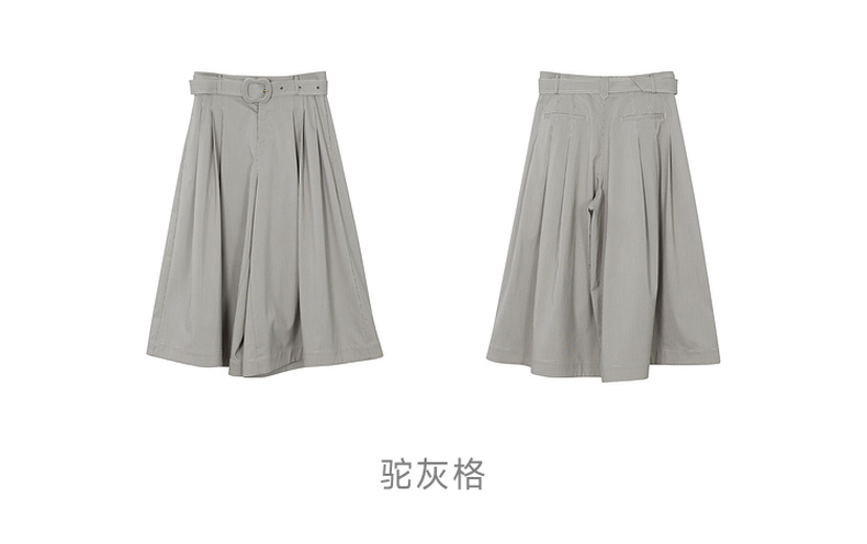 谜底时尚宽松裙裤女2023夏季新款简约高腰七分裤配腰带232MK0665