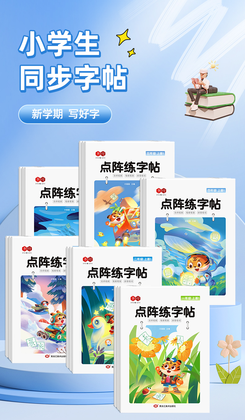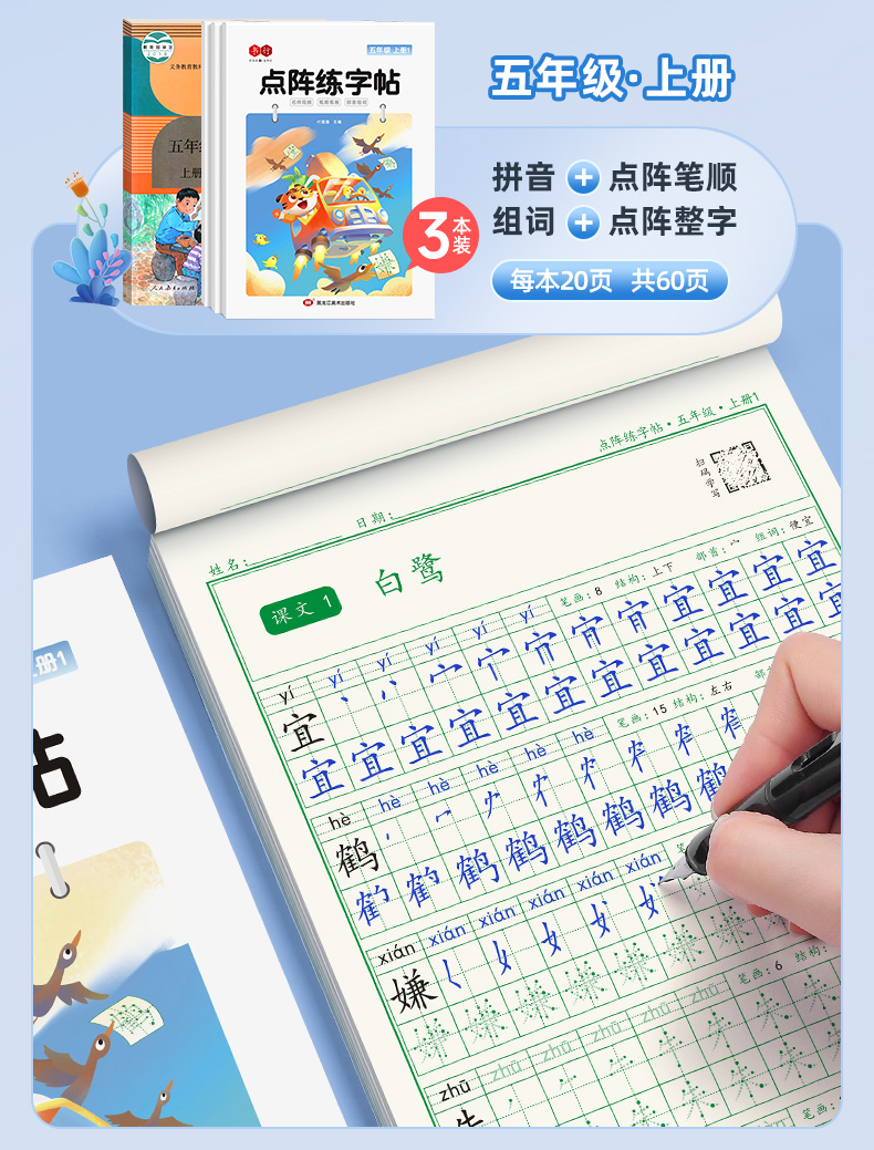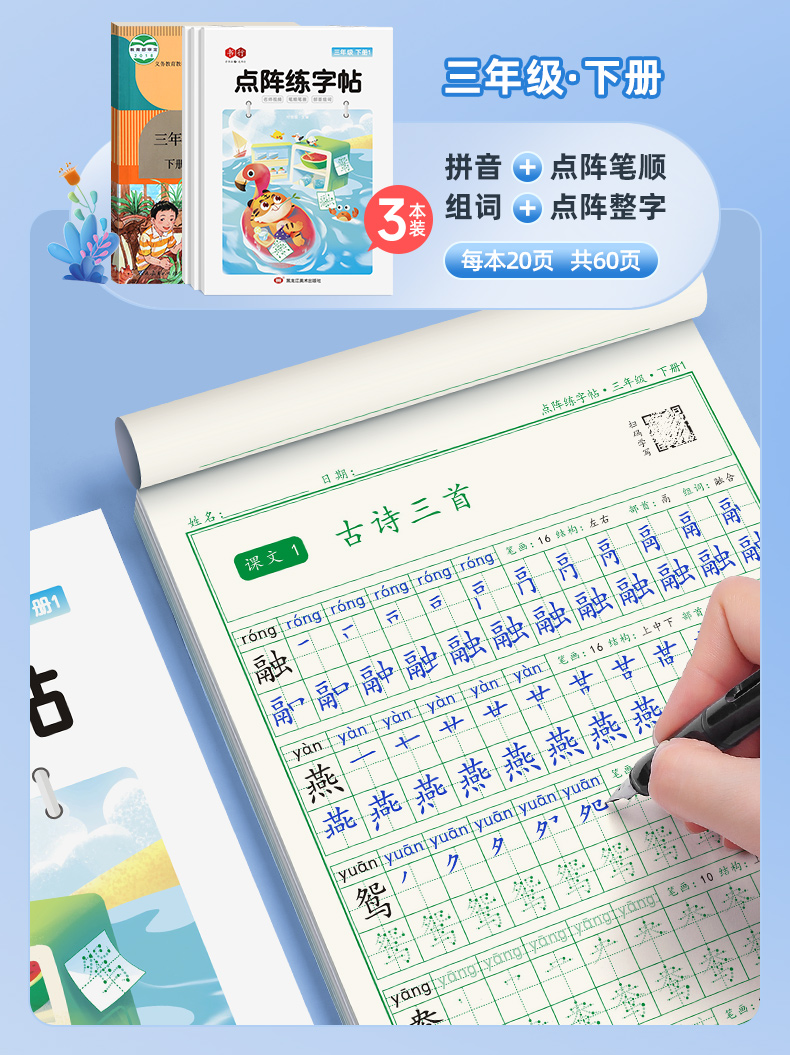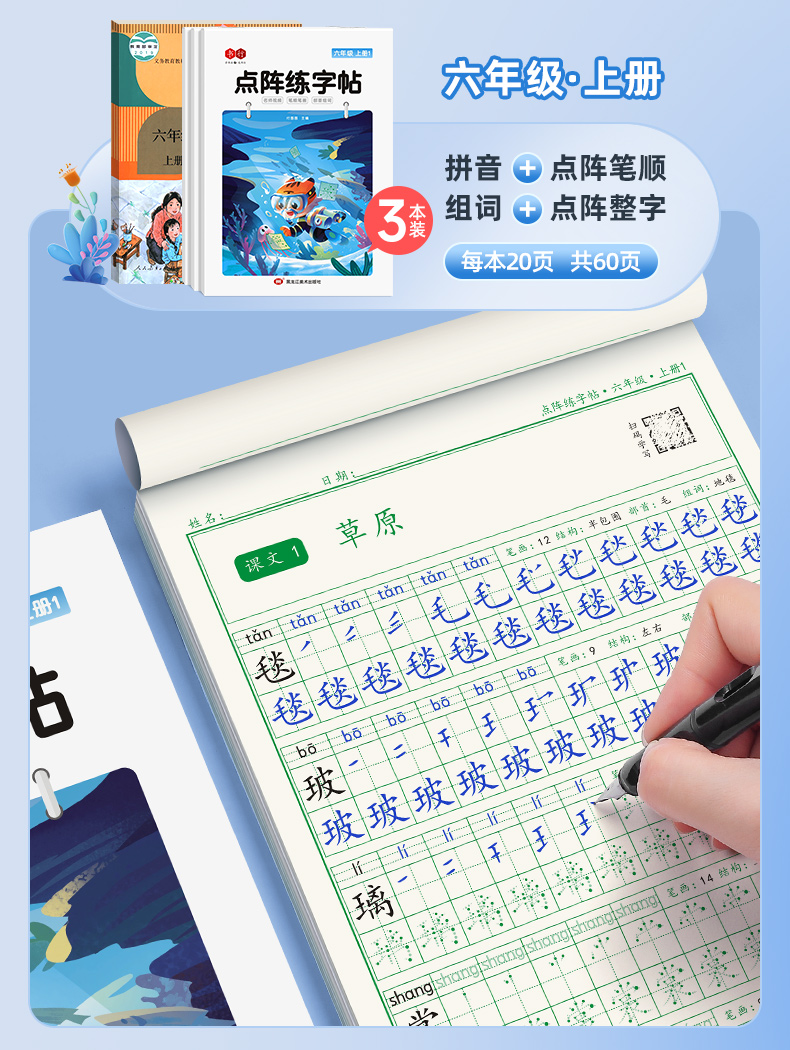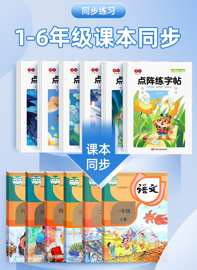 新版小学1-6年级练字帖同步语文生字点阵(小点轻大点重)掌握运笔笔顺每学期3本视频版