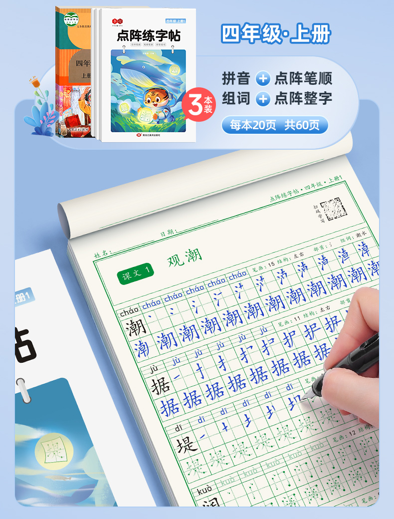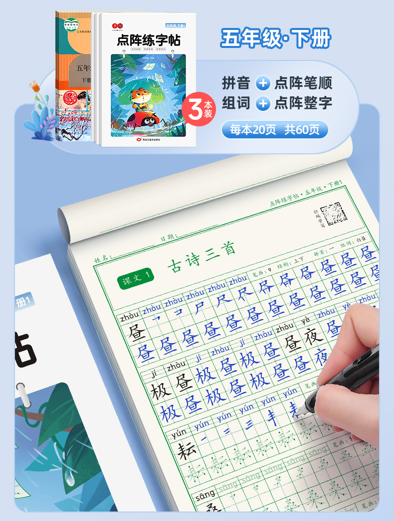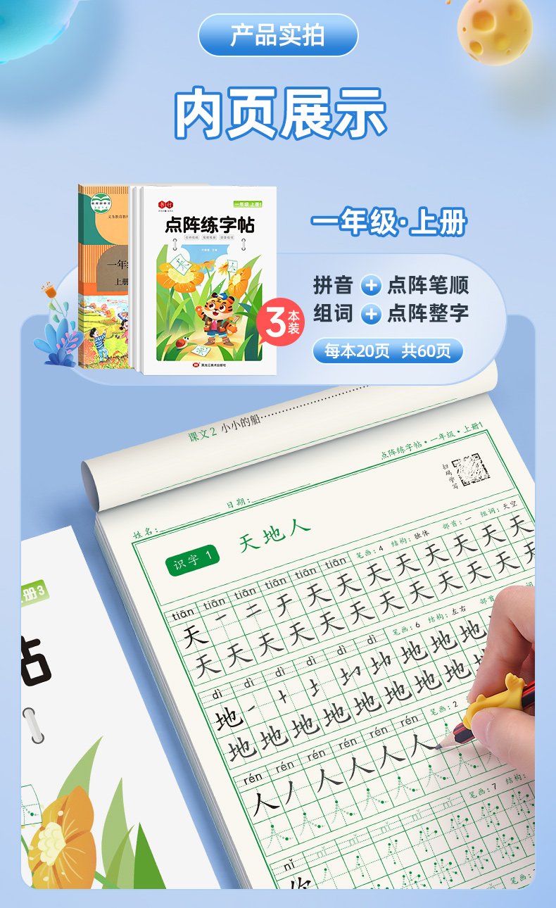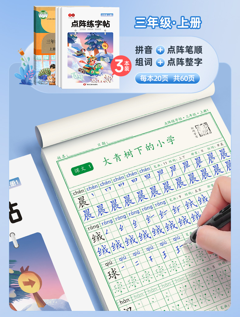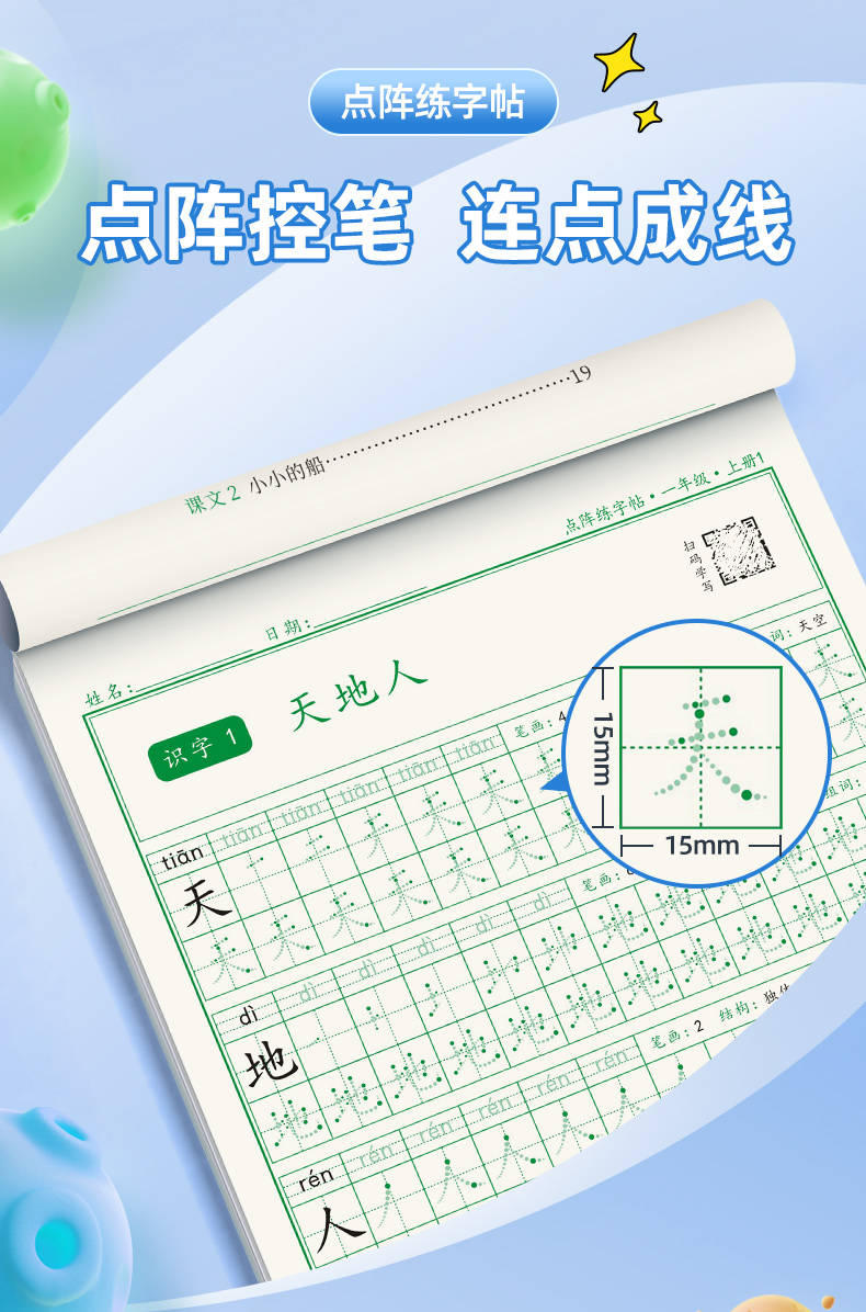 新版小学1-6年级练字帖同步语文生字点阵(小点轻大点重)掌握运笔笔顺每学期3本视频版