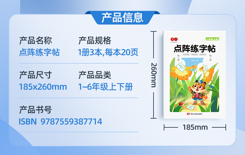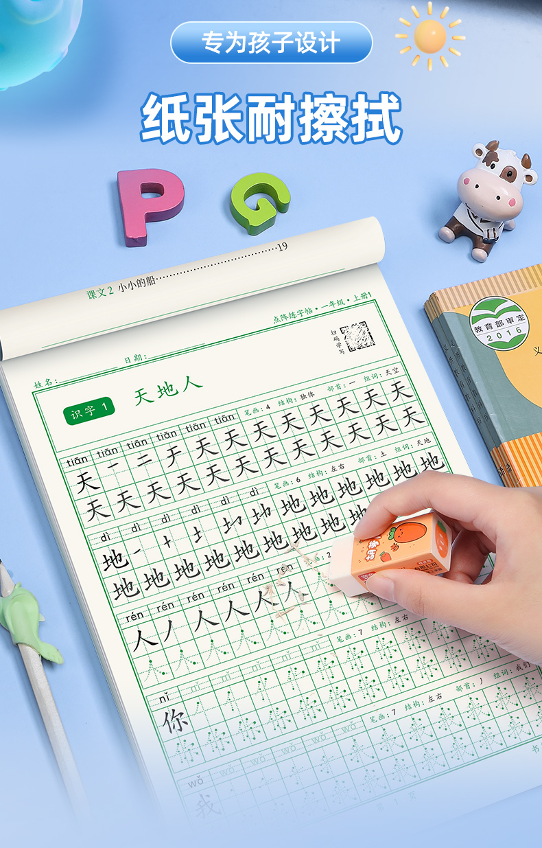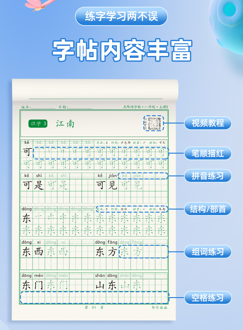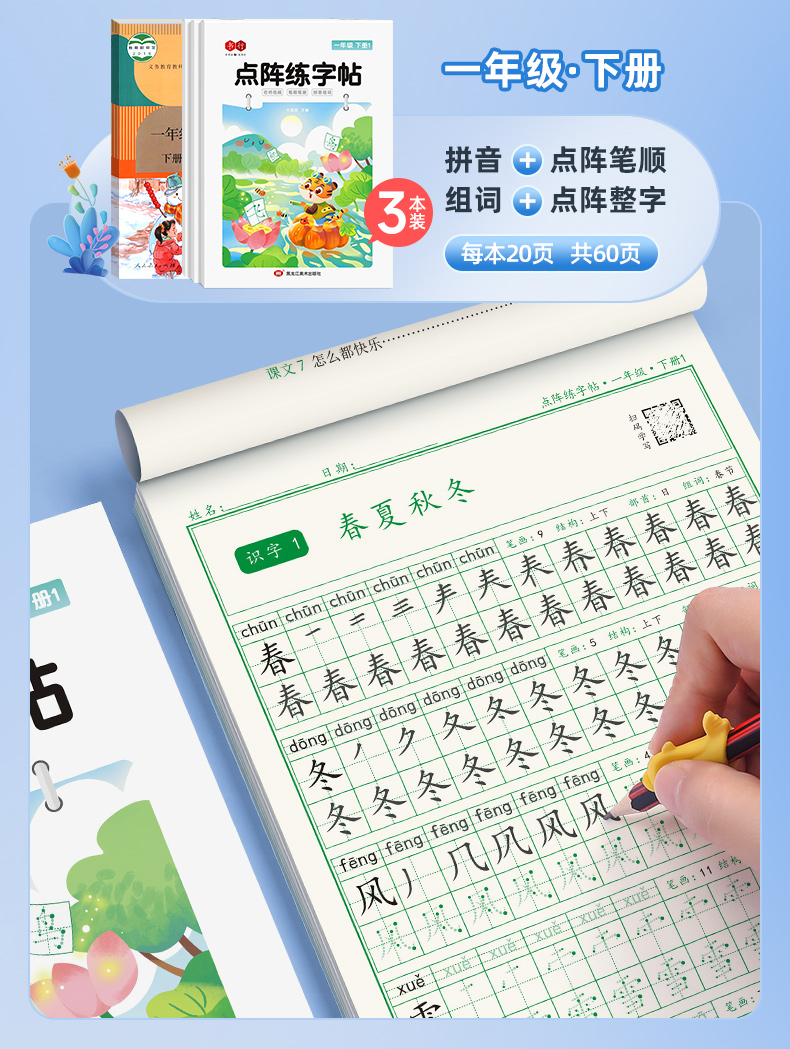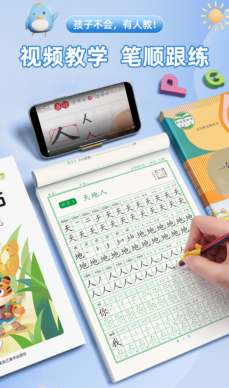 新版小学1-6年级练字帖同步语文生字点阵(小点轻大点重)掌握运笔笔顺每学期3本视频版