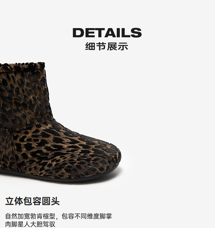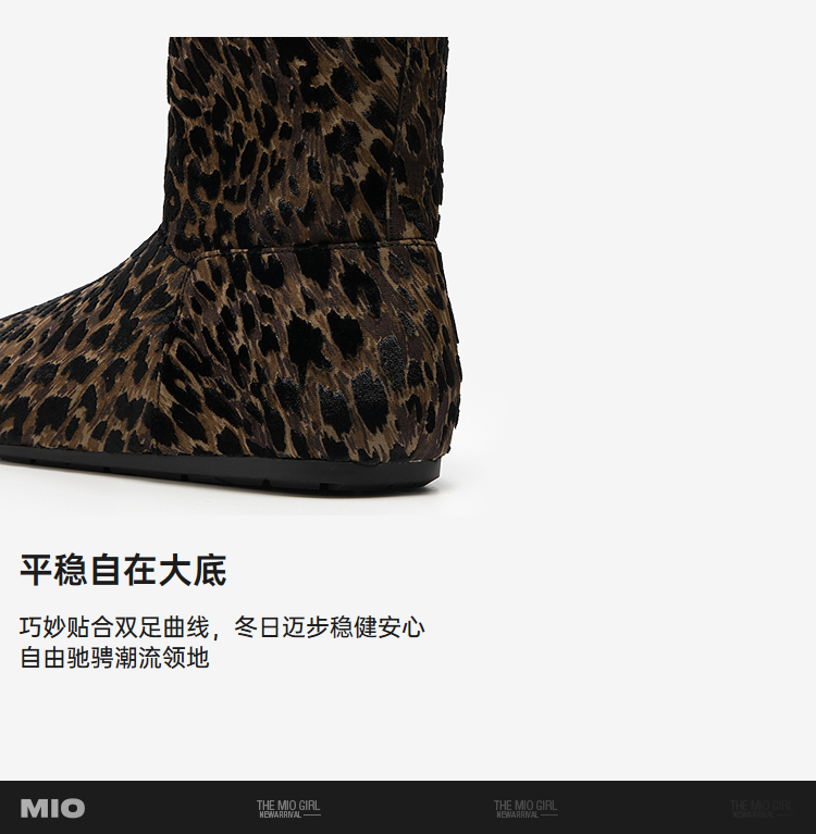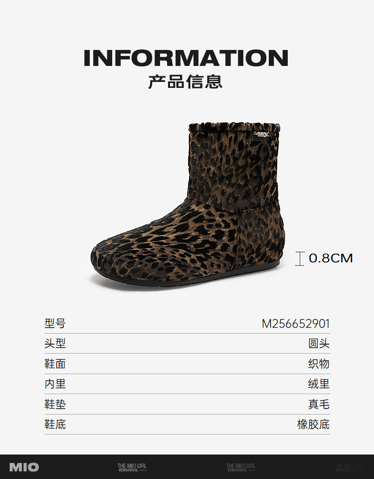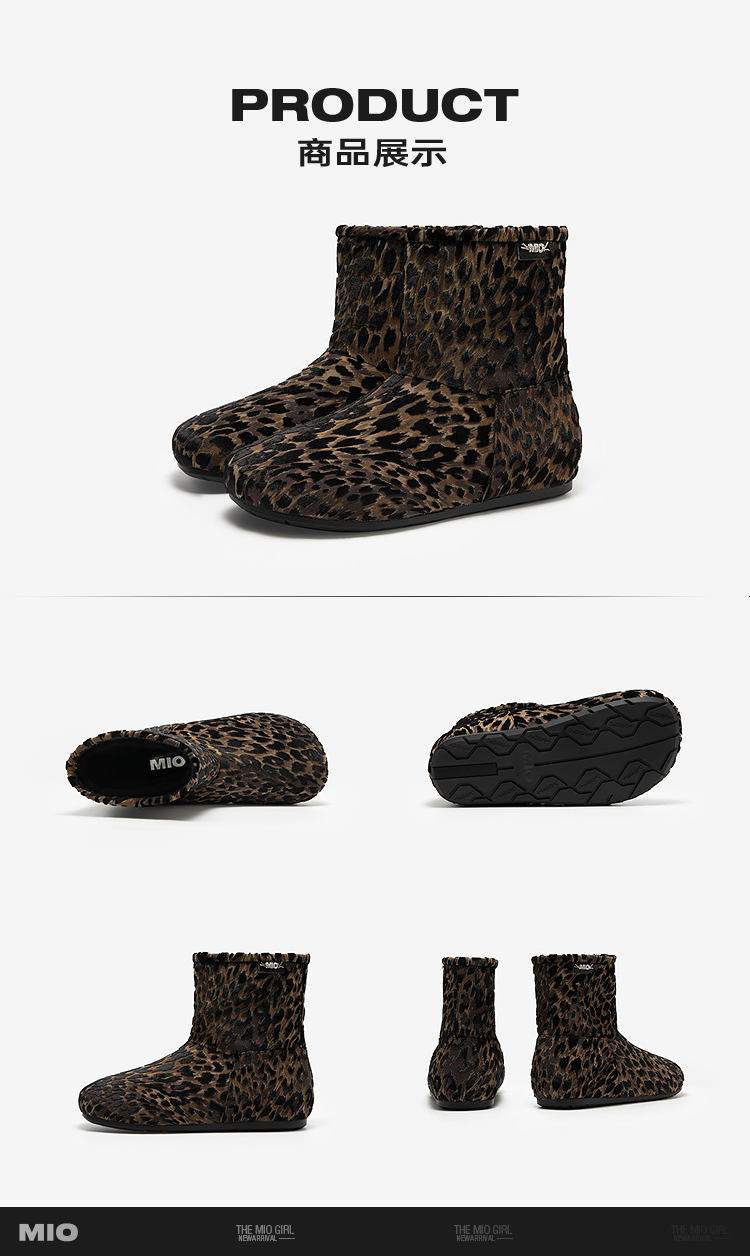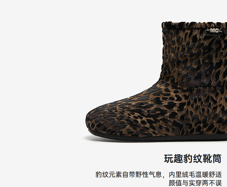 MIO米奥时尚雪地靴圆头平底豹纹保暖舒适短筒女靴子M256652901