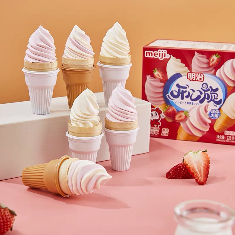 【新品尝鲜】明治草莓味&牛奶味&草莓牛奶味冰淇淋(6支装迷你火炬筒)228g