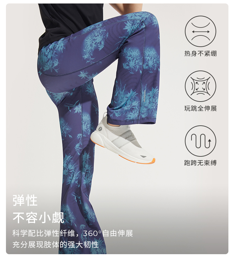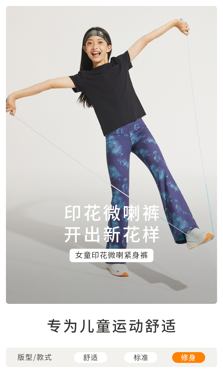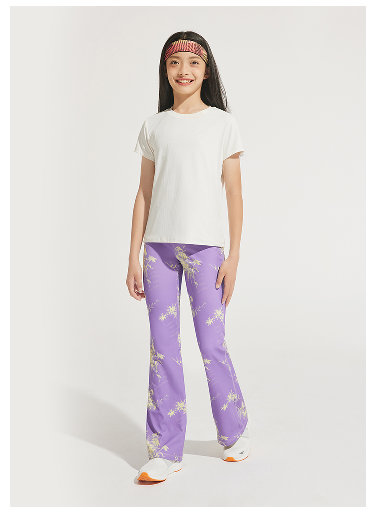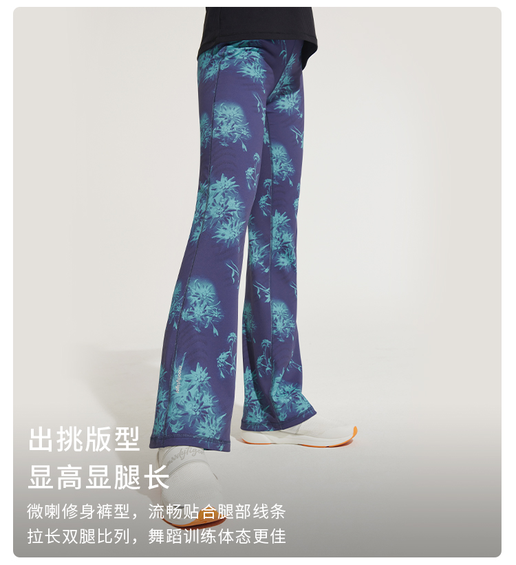 moodytiger儿童喇叭裤24秋新款女童时尚印花舒适微喇紧身裤