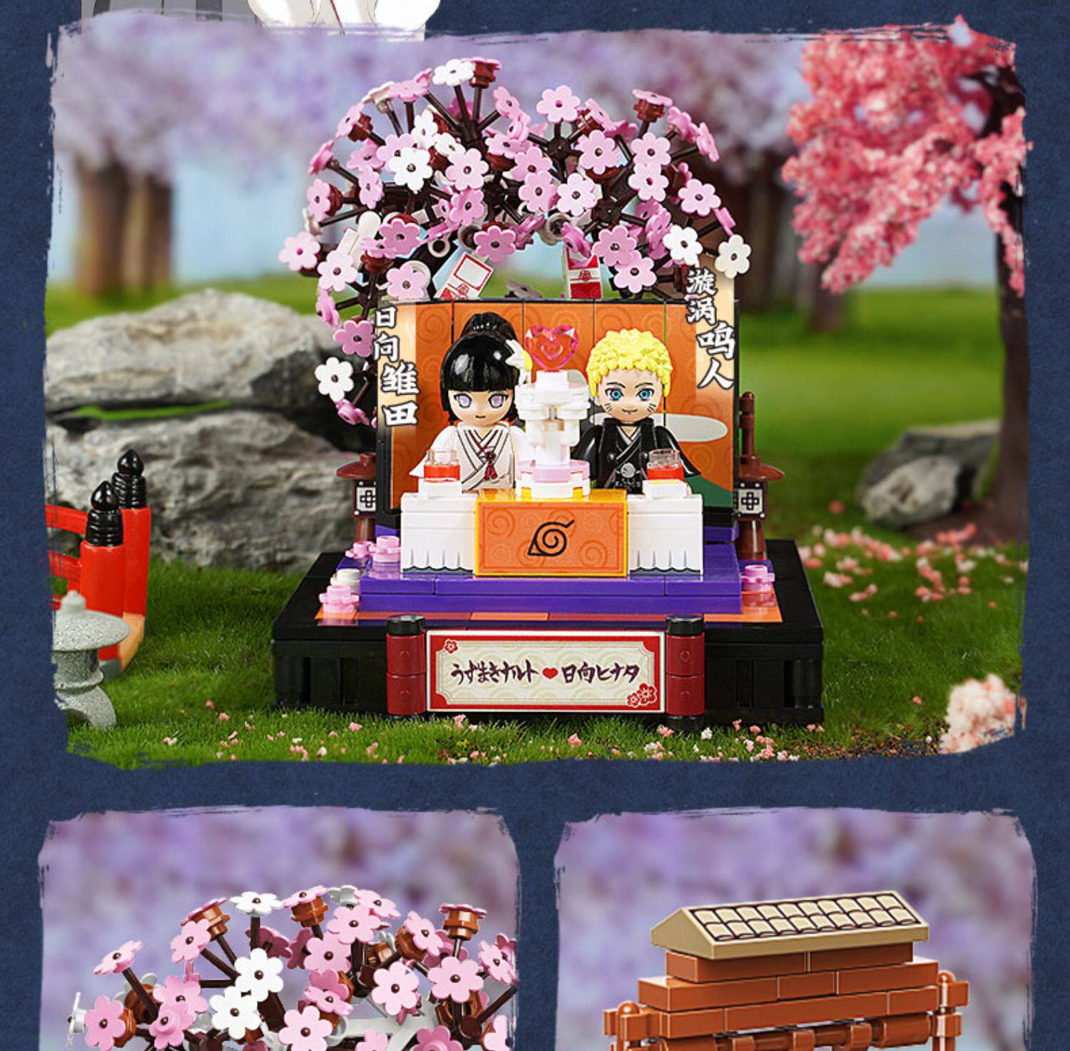 Keeppley火影忍者疾风传鸣人与雏田的婚宴积木拼装玩具动漫周边